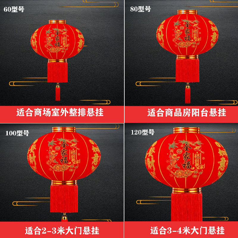 过年植绒大红灯笼户外阳台灯笼农村大门挂饰新年装饰电池发光布置