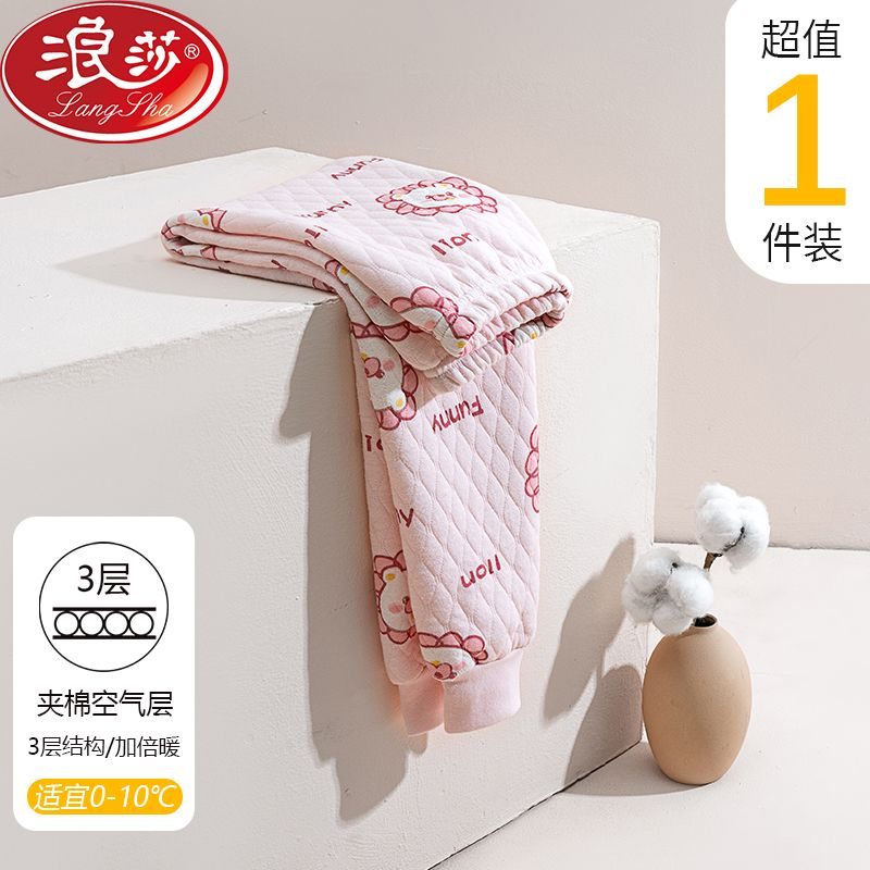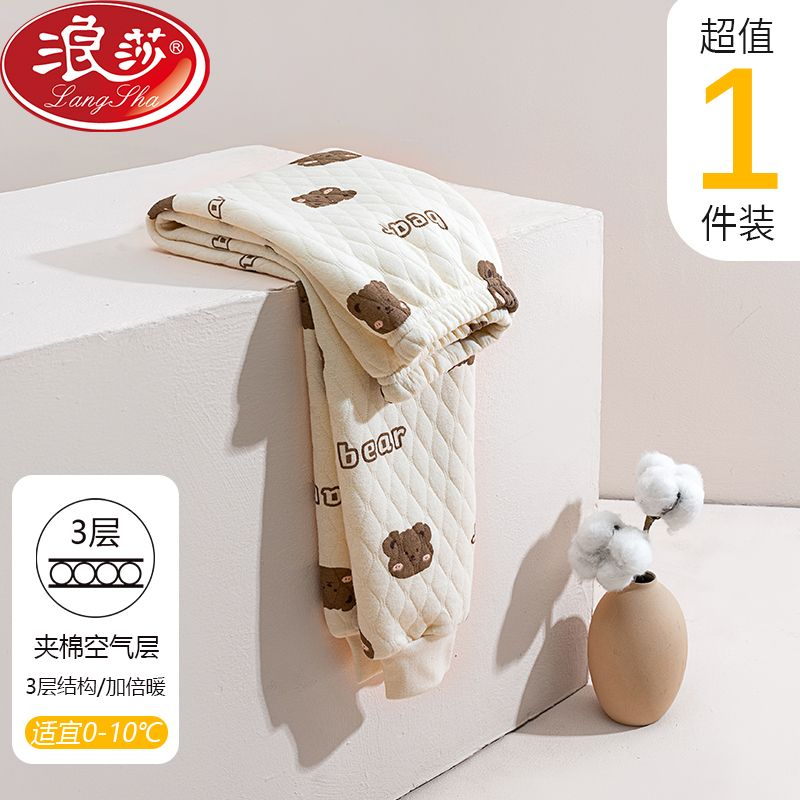 浪莎三层加厚儿童保暖裤女童中大童加棉男孩表层纯棉秋裤打底睡裤