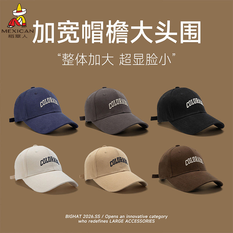 稻草人硬顶磨毛大头围棒球帽男宽帽檐鸭舌帽女显脸小防晒帽子遮阳