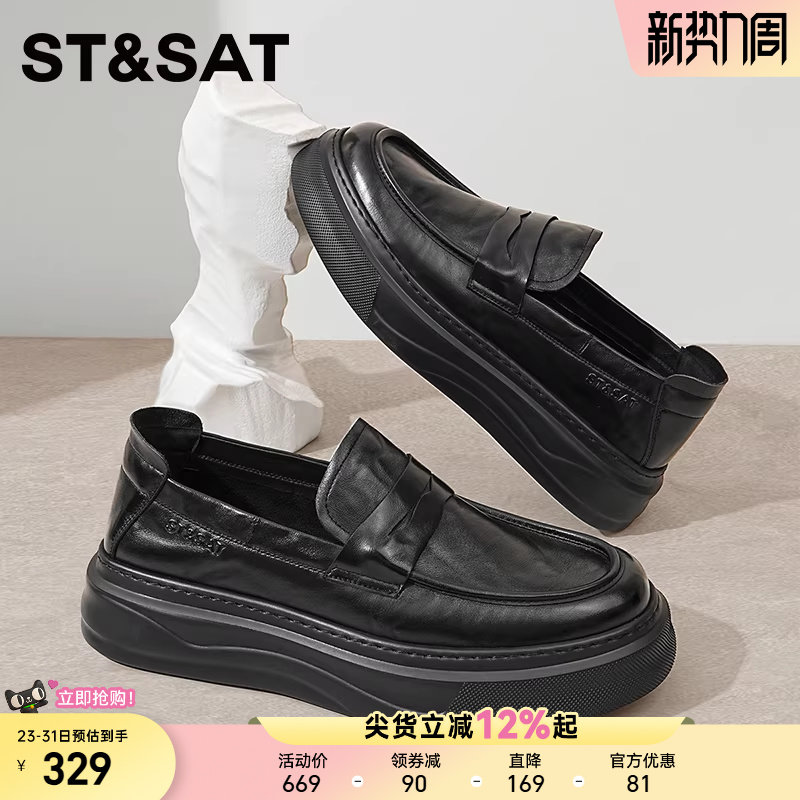 星期六男鞋一脚蹬休闲鞋男2025新款秋大头乐福鞋商务厚底增高皮鞋