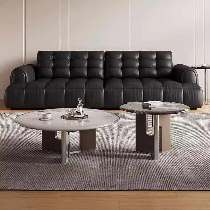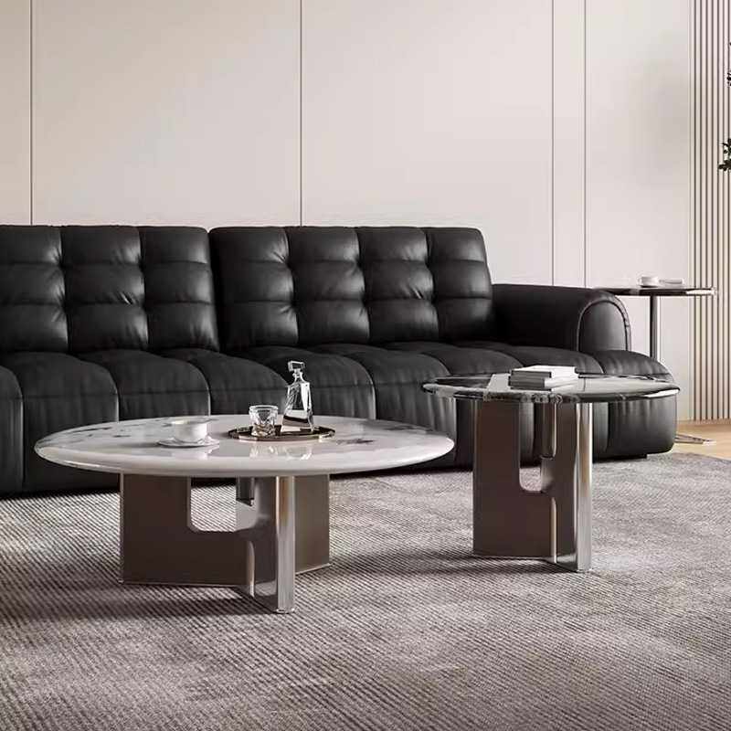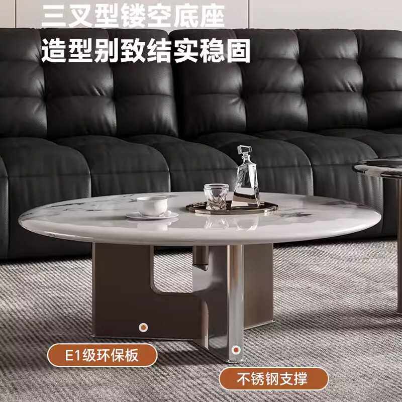 意式轻奢大小圆茶几客厅家用小户型极简微晶石圆形茶几边几组合