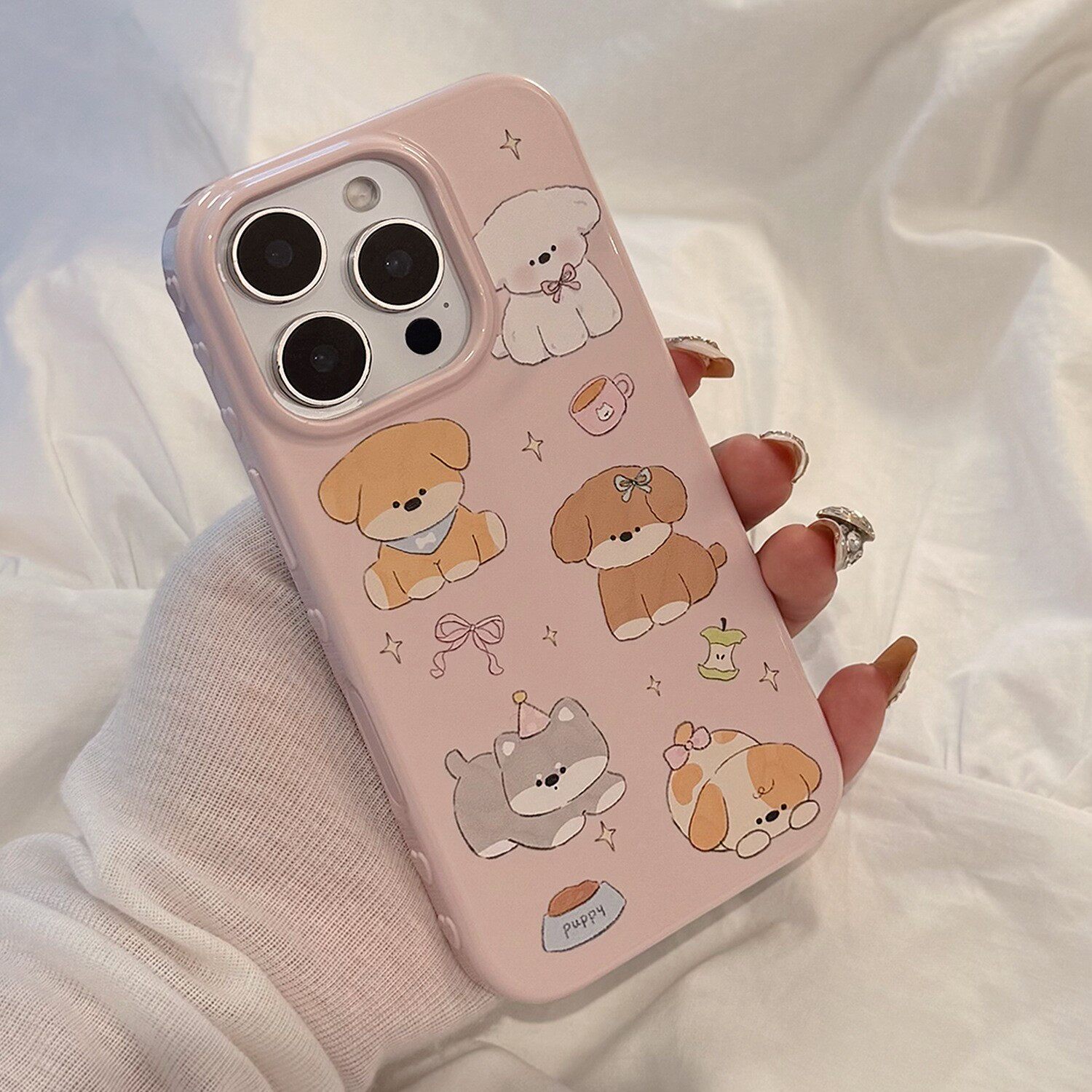可爱少女粉色小狗狗动物适用苹果17手机壳iphone17新款15pro女款14小清新日韩风简约12甜美15全包13软壳16