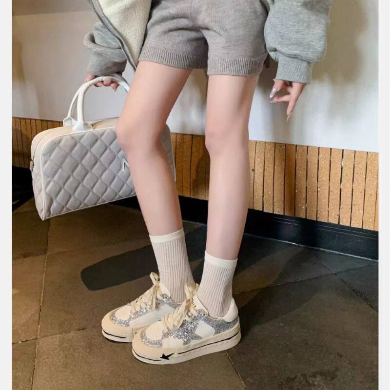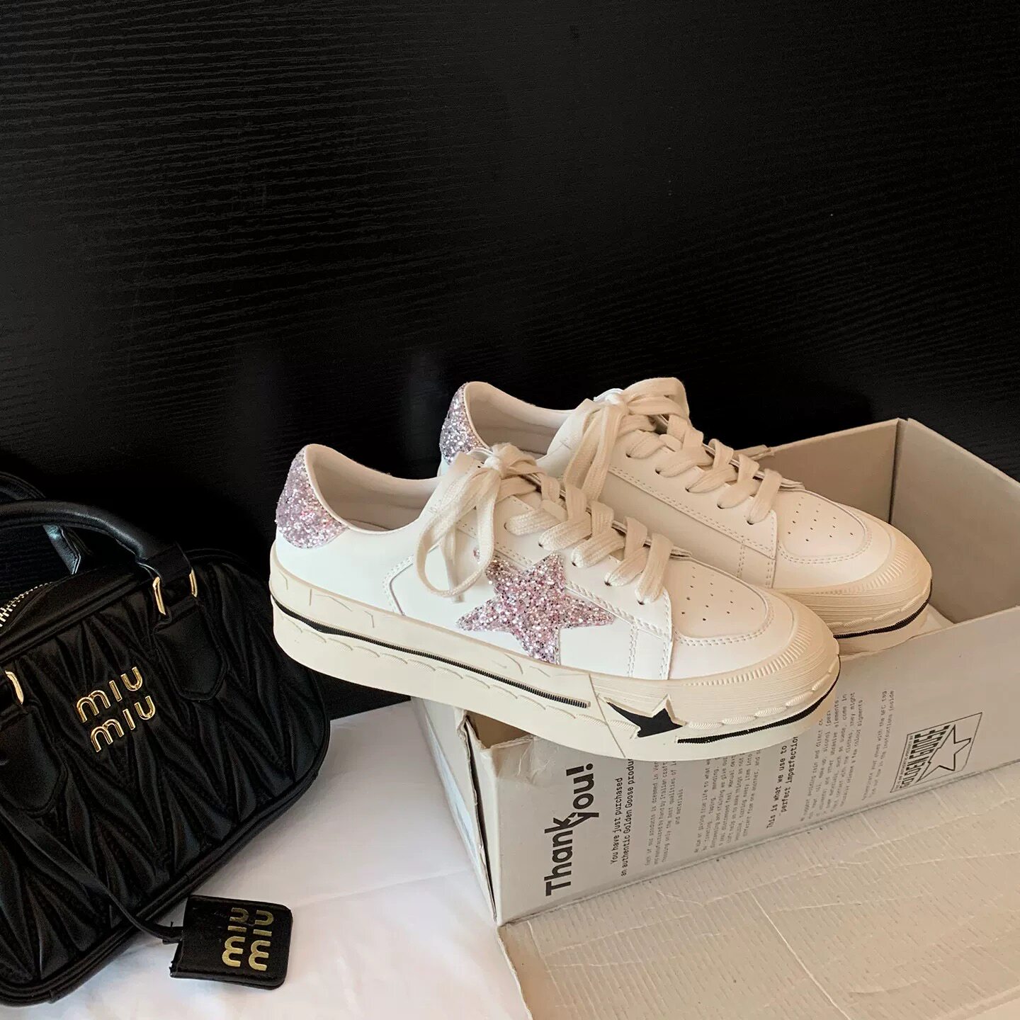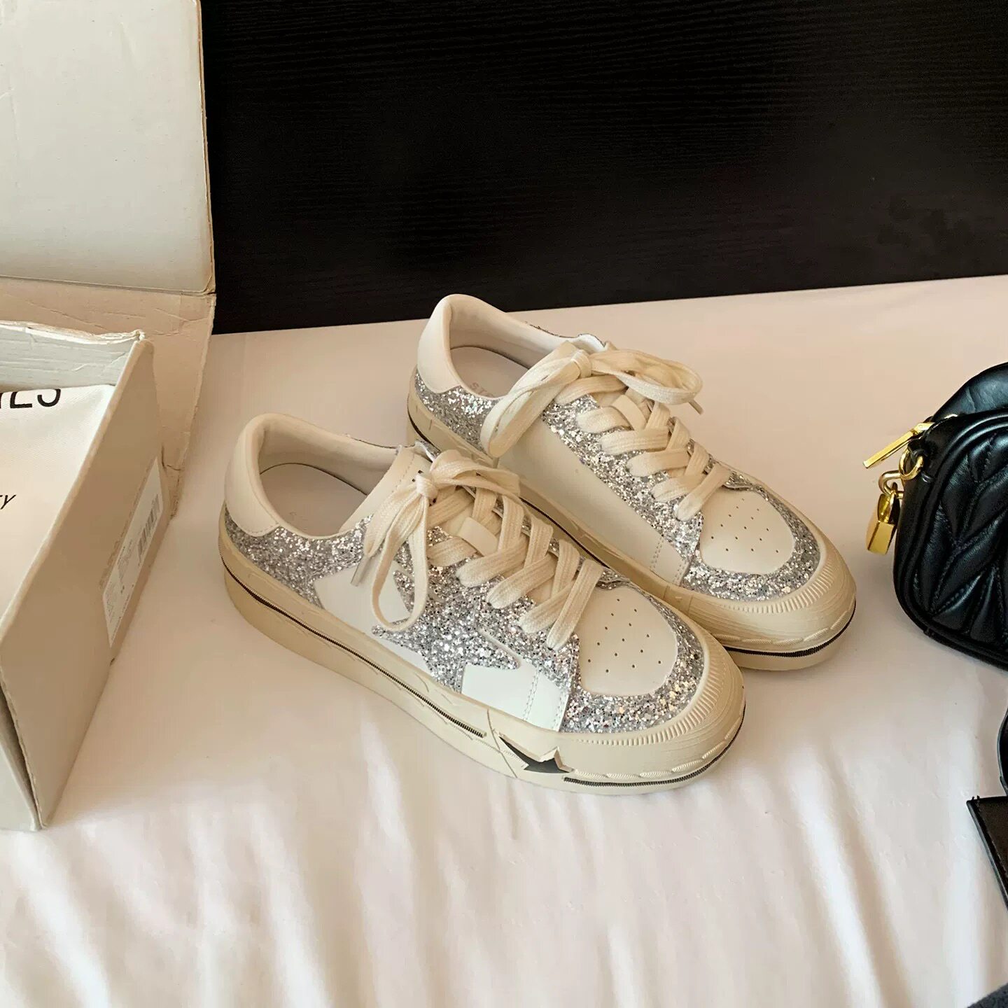 复古银色星星板鞋小白鞋女2026春新款拼色百搭运动休闲厚底德训鞋