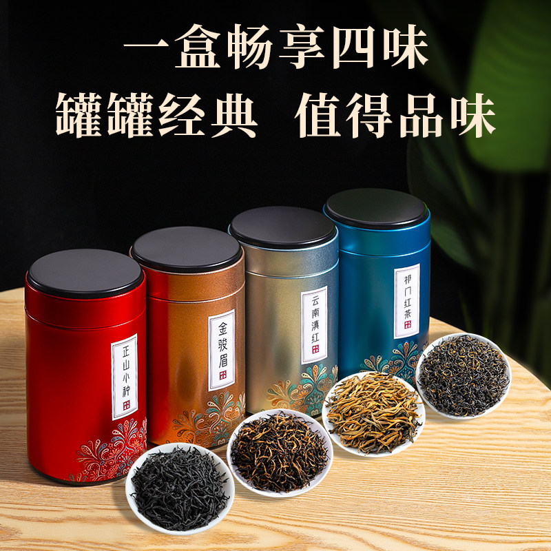 四大茗茶叶礼盒装金骏眉大红袍铁观音小种红茶浓香小罐茶送礼父亲