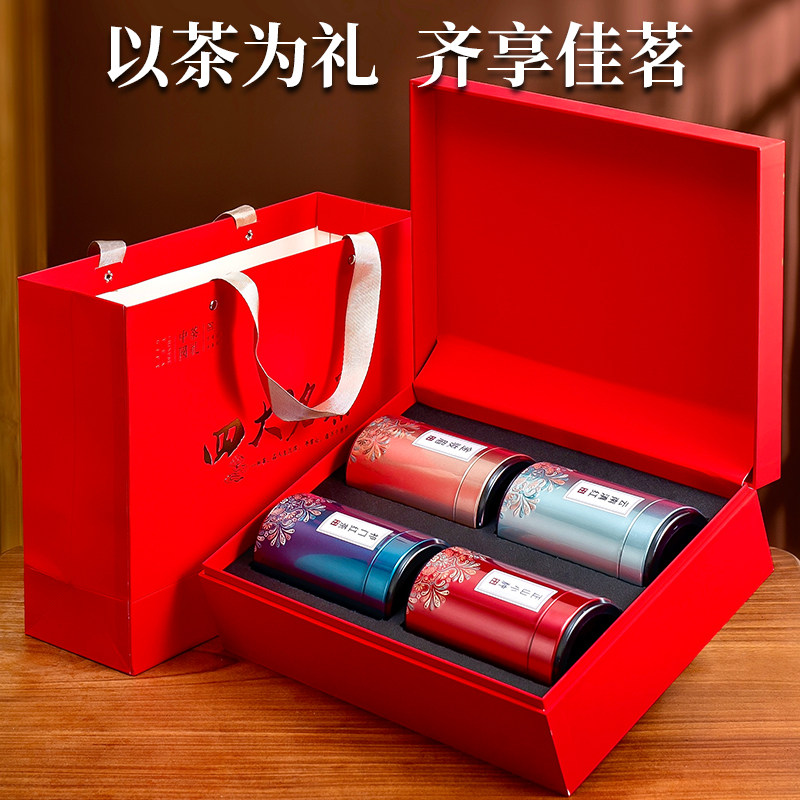 四大茗茶叶礼盒装金骏眉大红袍铁观音小种红茶小罐过年货节日送礼