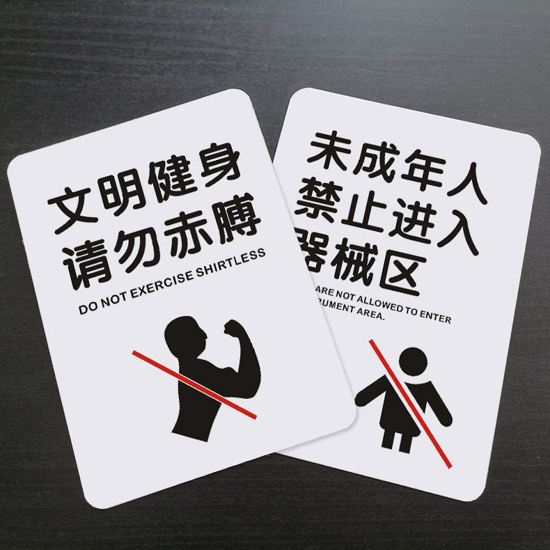 健身房提示牌PVC贴牌 使用器械轻拿轻放标识牌 器械使用后请放回原位 文明健身请勿赤膊 非会员不得擅自入场