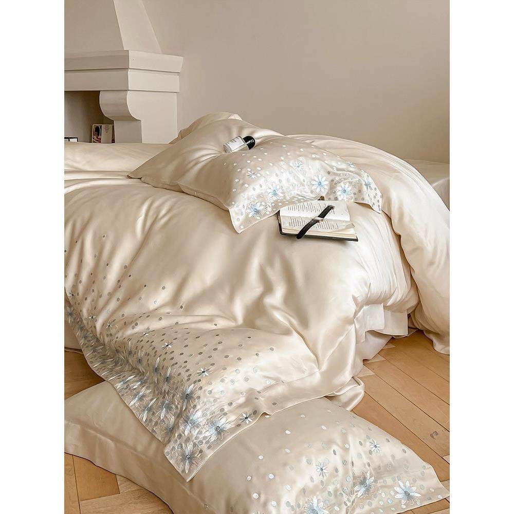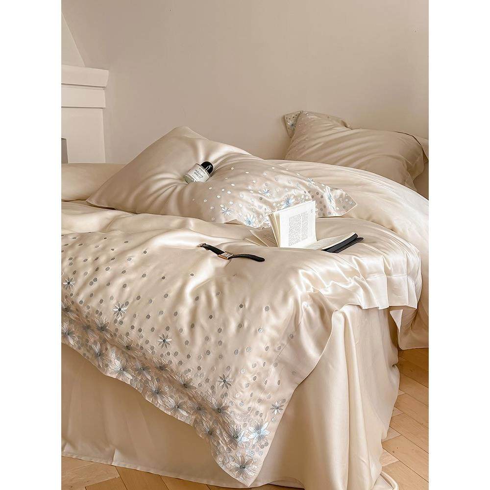 春夏季少女心凉感100支兰精莱赛尔四件套花卉刺绣丝滑被套1.8床品