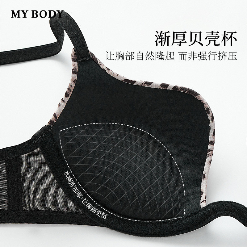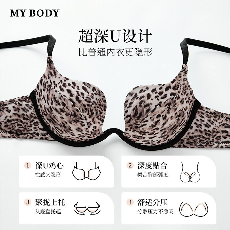 MYBODY商场同款新款聚拢内衣小胸显大性感深V豹纹隐形无痕文胸女