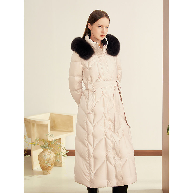鸭鸭中戏pro羽绒服女冬中长款连帽过膝加厚95绒波兰鸭绒保暖外套J