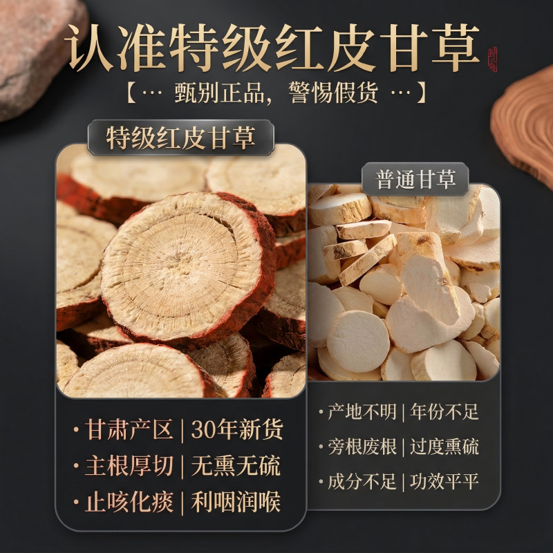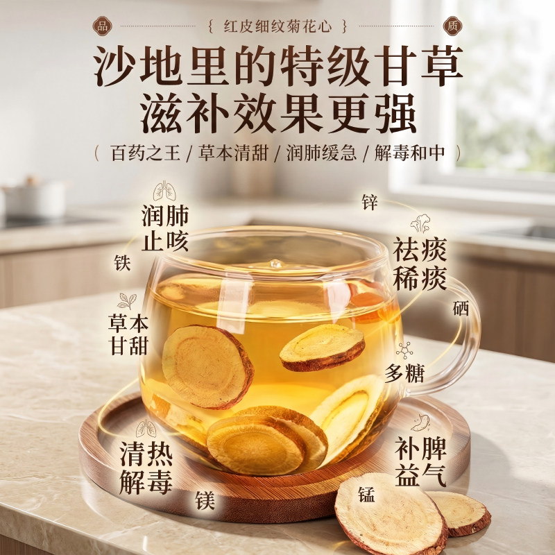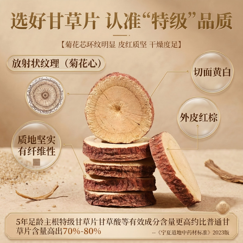 特级甘草片正品中药材黄芪丹参止咳化痰野生补气当归茯苓山楂菊花