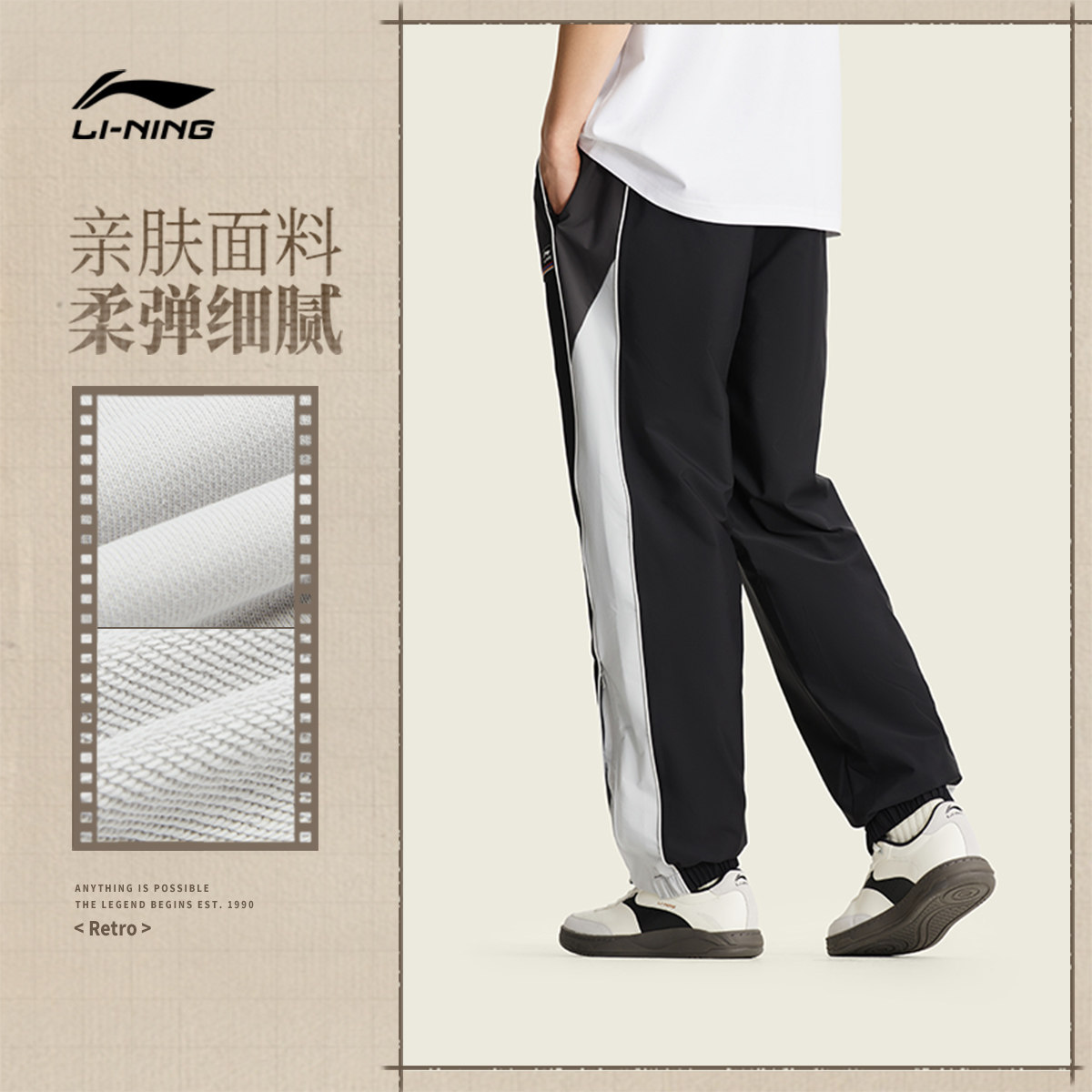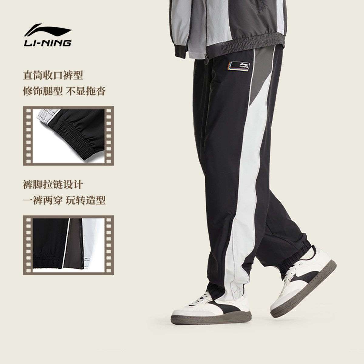 李宁运动裤2026新款男士休闲跑步潮流长裤防泼水春季束脚梭织男裤