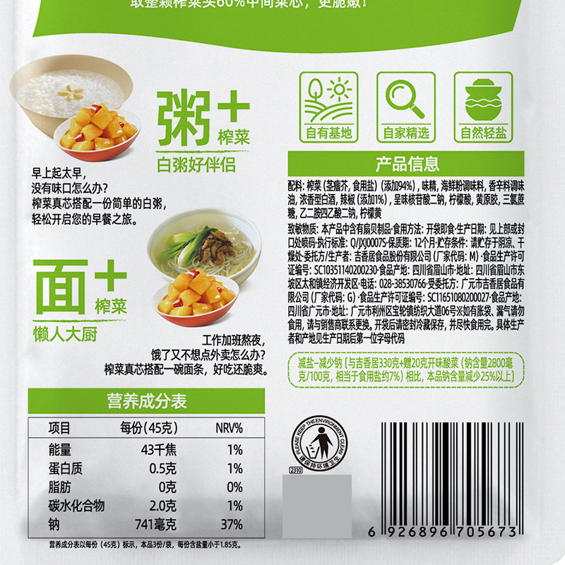 【香辣味】吉香居榨菜真芯135g袋装香辣脆咸菜腌菜下饭开味菜微辣