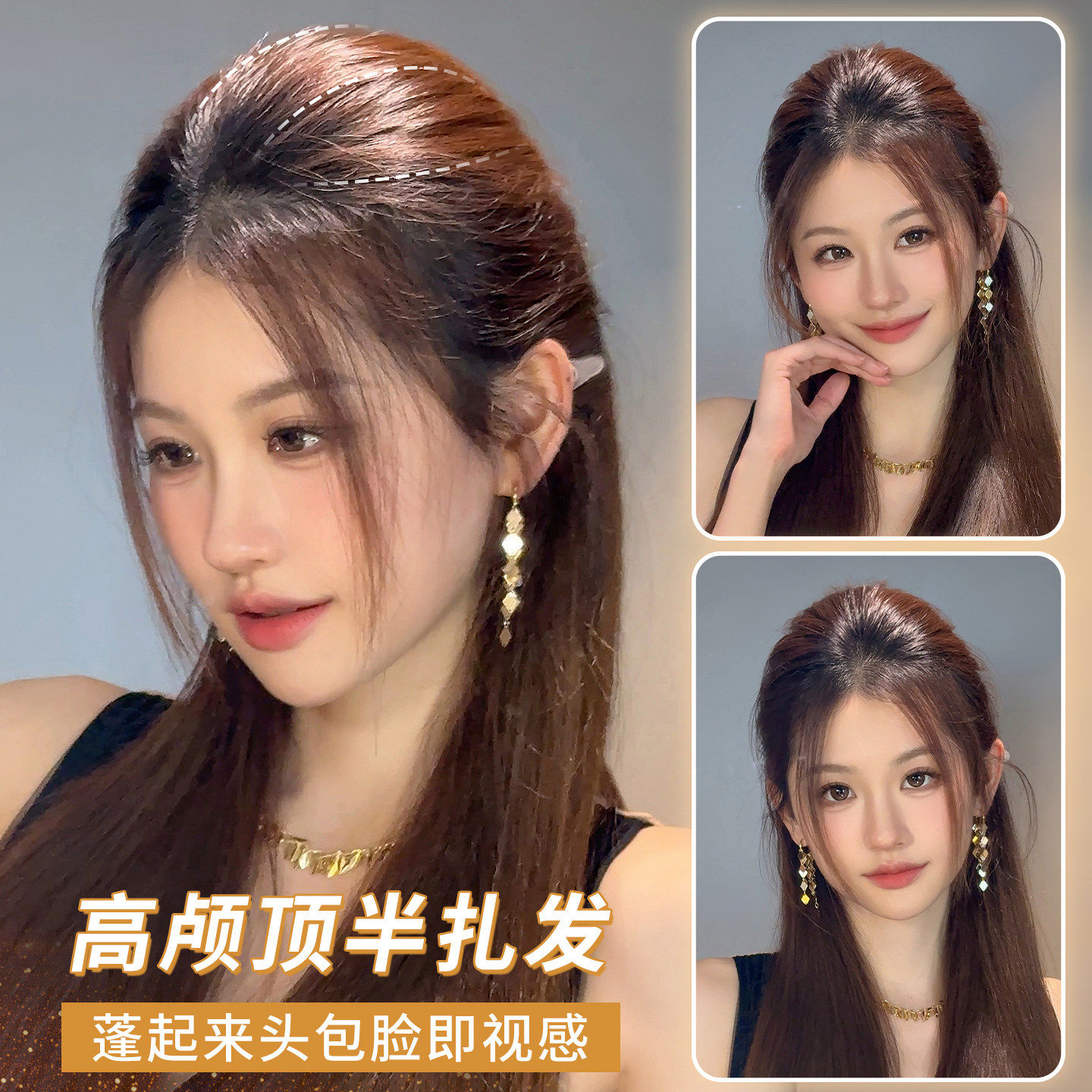 不用戴发网假发女片头顶补发增发量蓬松高颅顶遮白发大波浪长卷发