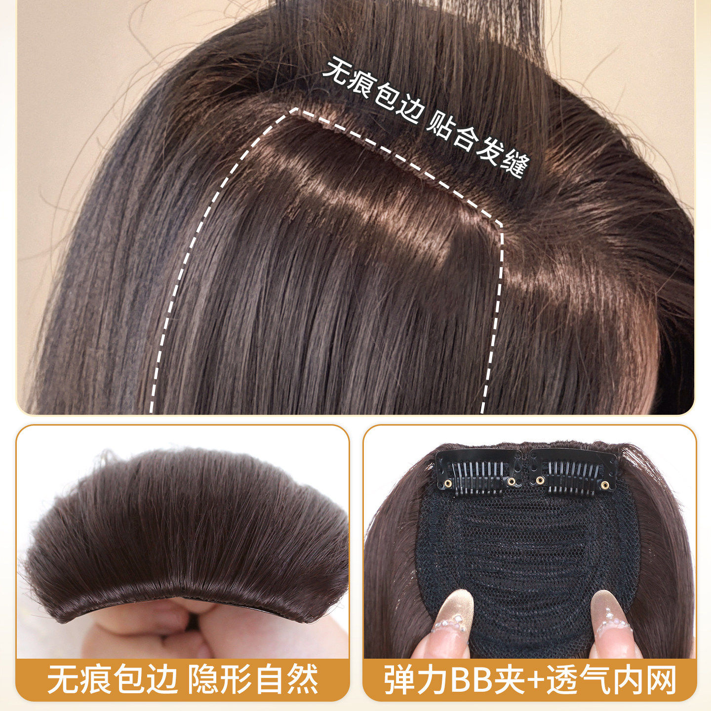 高颅顶纹理垫发片女大光明无痕补发增发量假发片发根蓬松垫发神器