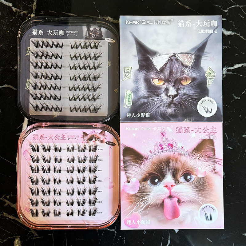 猫系公主免胶假睫毛大玩咖自然仿真持久卷翘漫画单蔟分段浓密睫毛