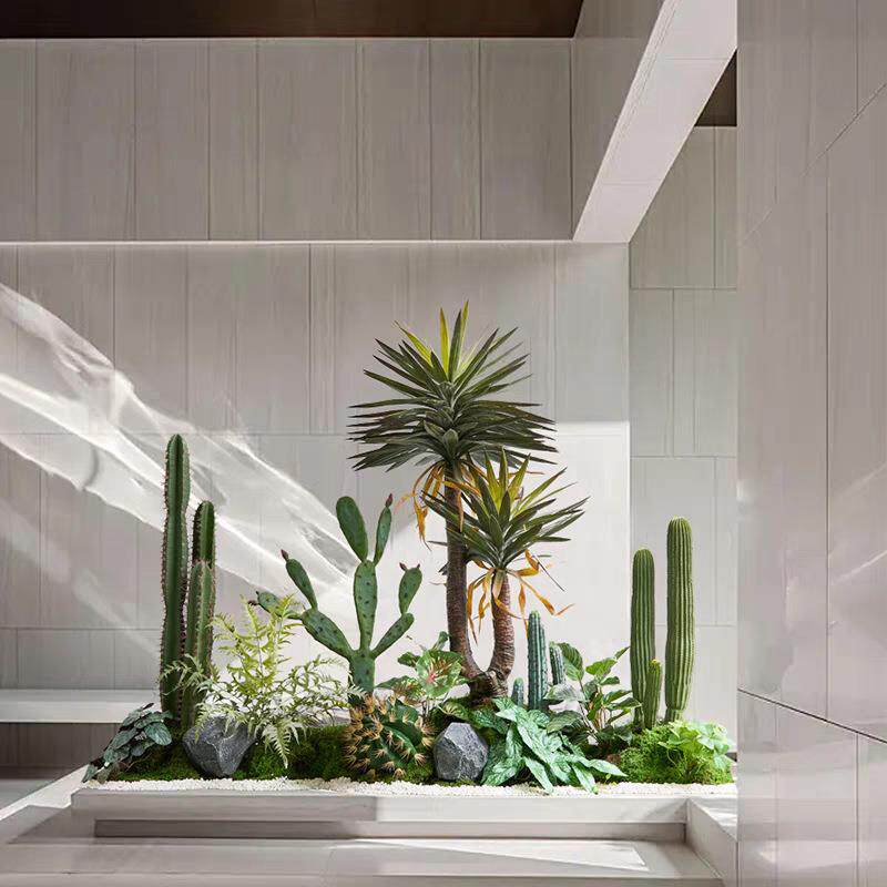 入户玄关仿真仙人掌绿植造景观高端轻奢热带防真人造植物布置组合