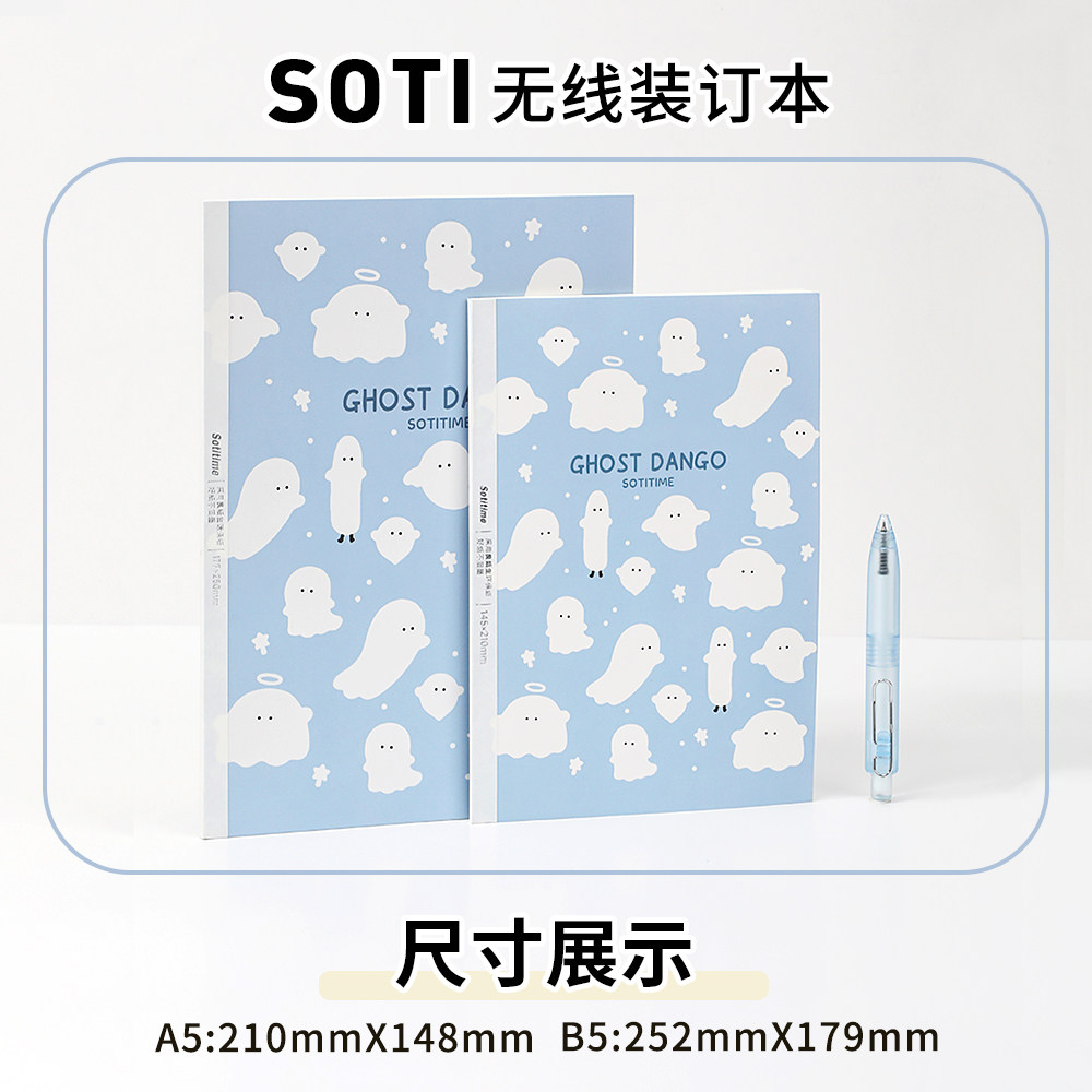苏铁时光无线胶装本幽灵团子合集记事本学习高颜值学生A5B5学习用品卡通可爱小幽灵笔记本横线本不卡纸手账本