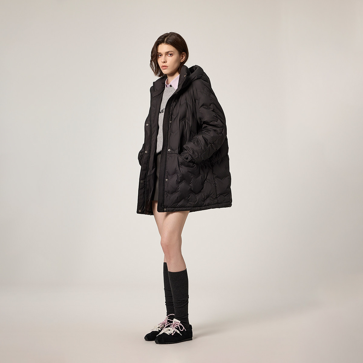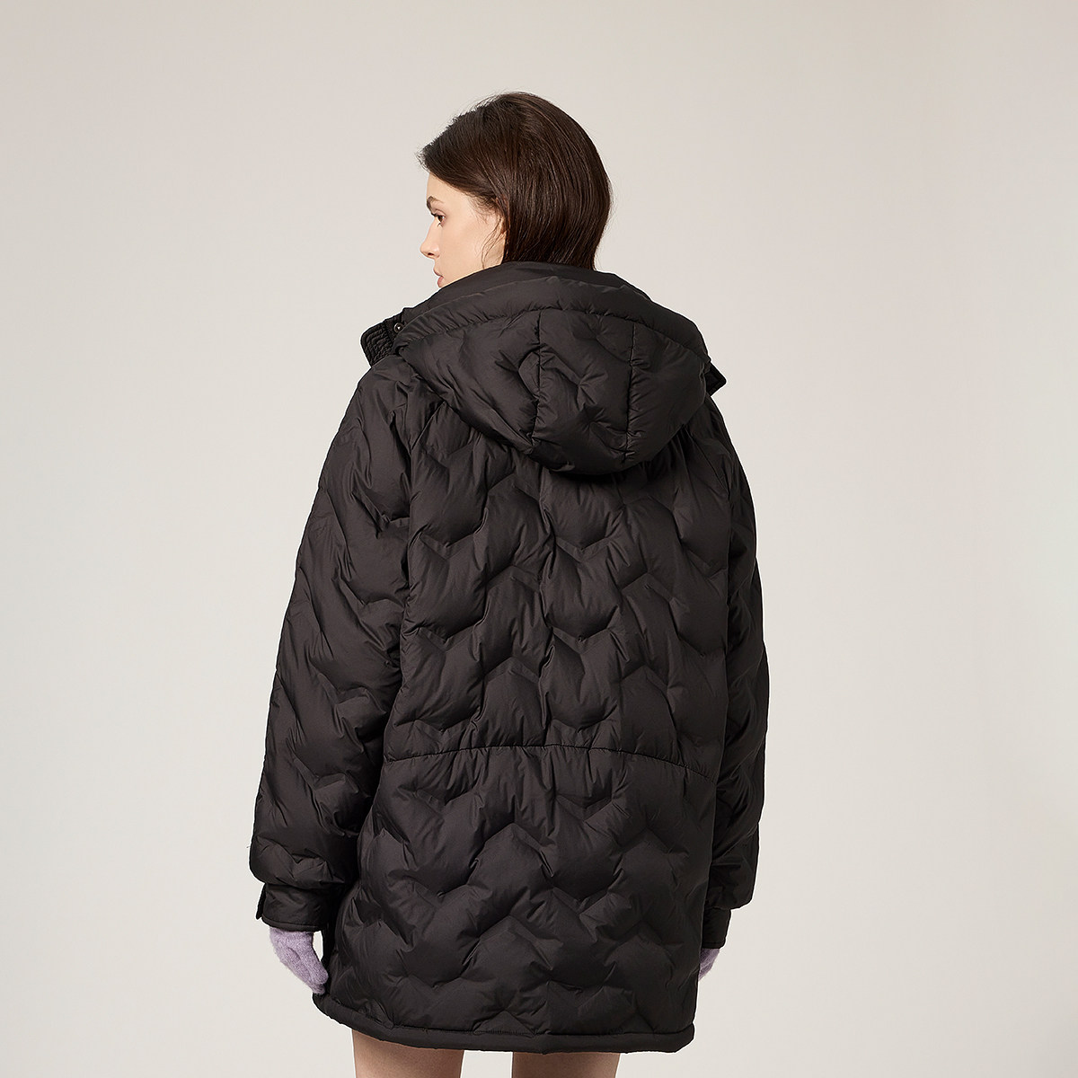 OCHIRLY欧时力连帽压花中长款羽绒服外套女士流行休闲冬