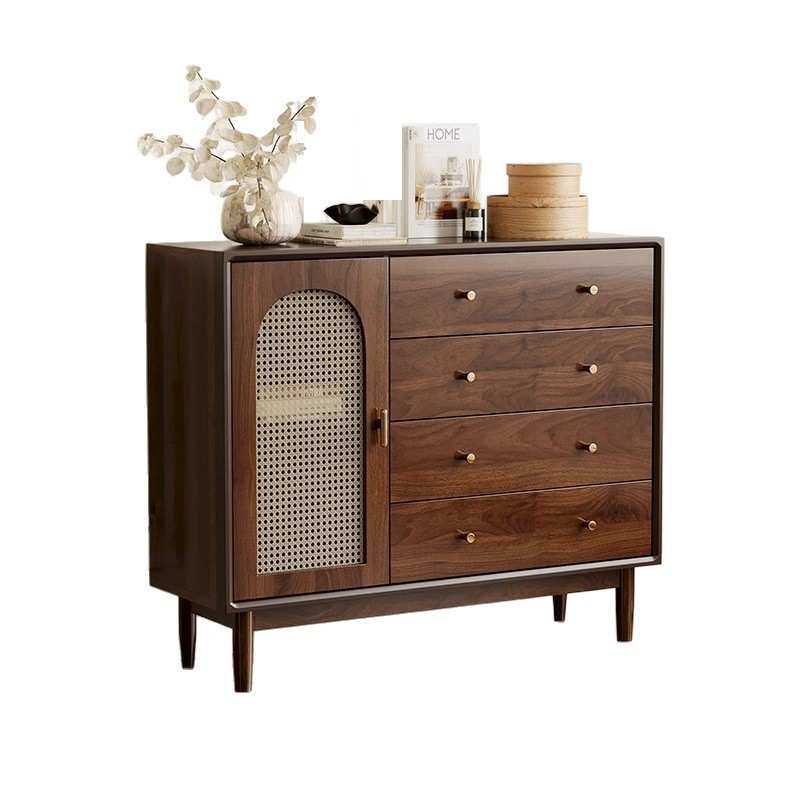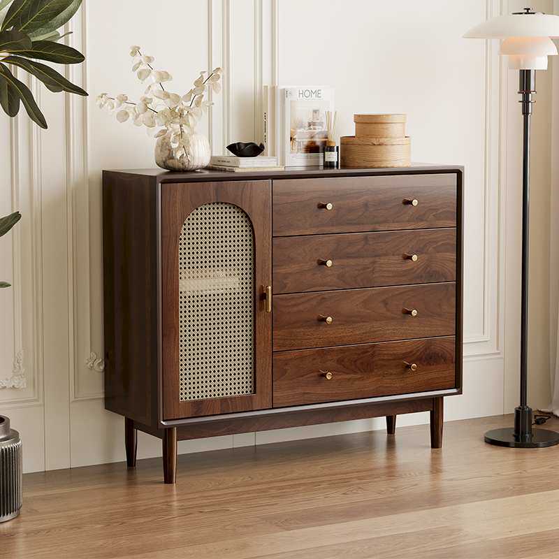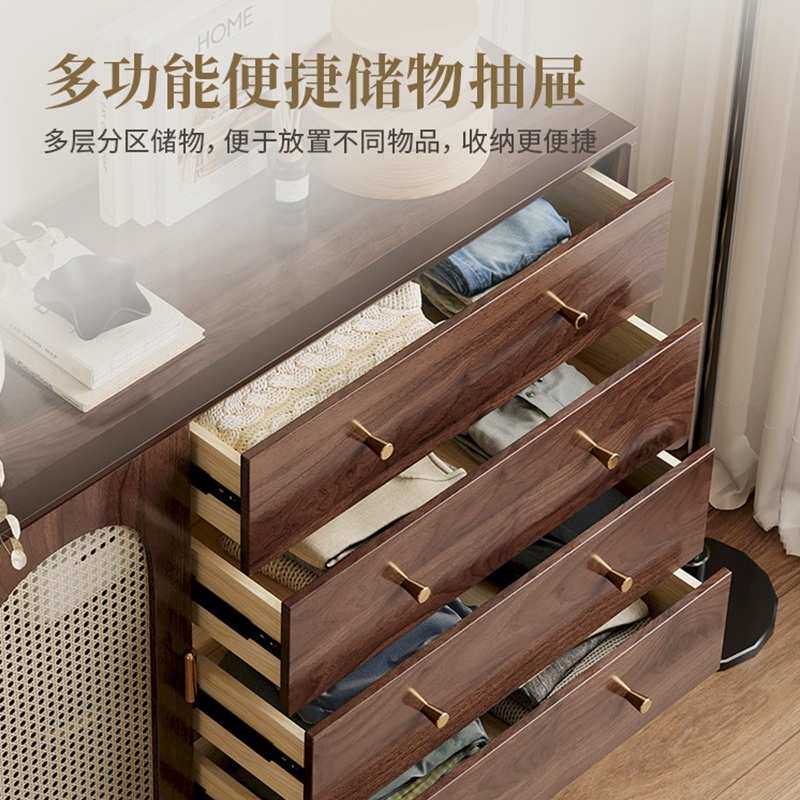 斗柜客厅收纳柜小立柜复古藤编实木腿置物柜卧室靠墙储物柜抽屉柜