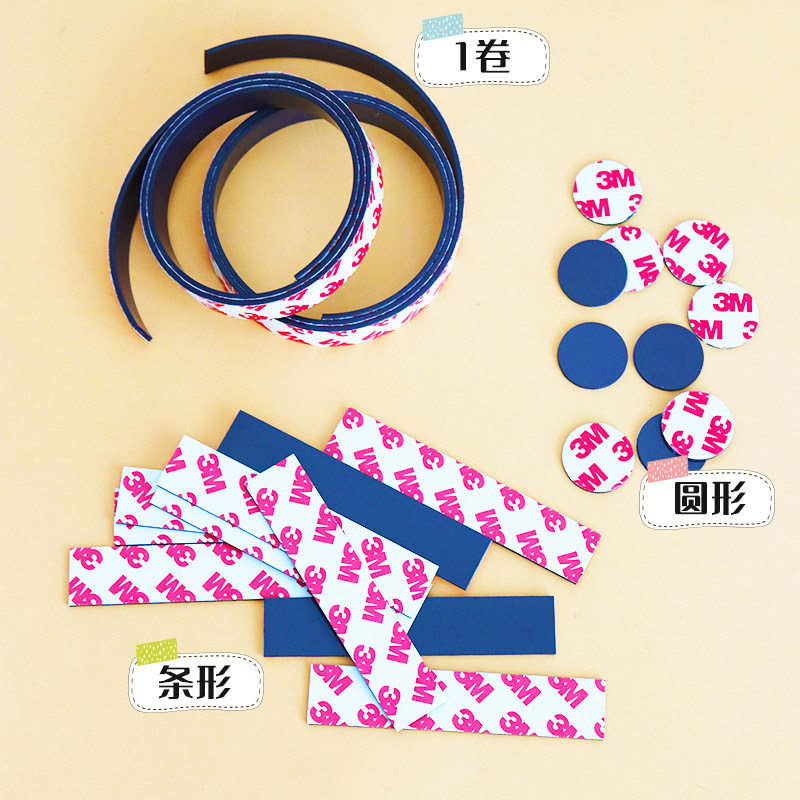 3m磁力贴磁条强磁背胶吸铁圆形板书软磁贴白板磁铁贴片黑板幼儿园