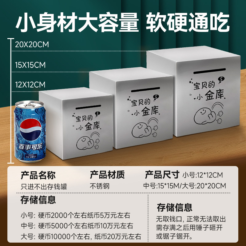 存钱罐只进不出儿童男女孩大号不锈钢储钱罐2026年新款成人存钱箱