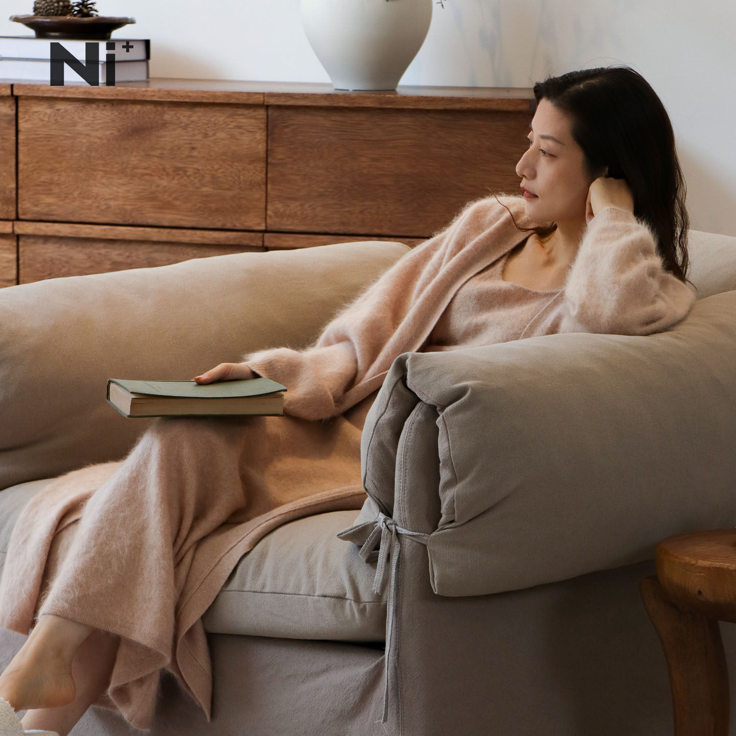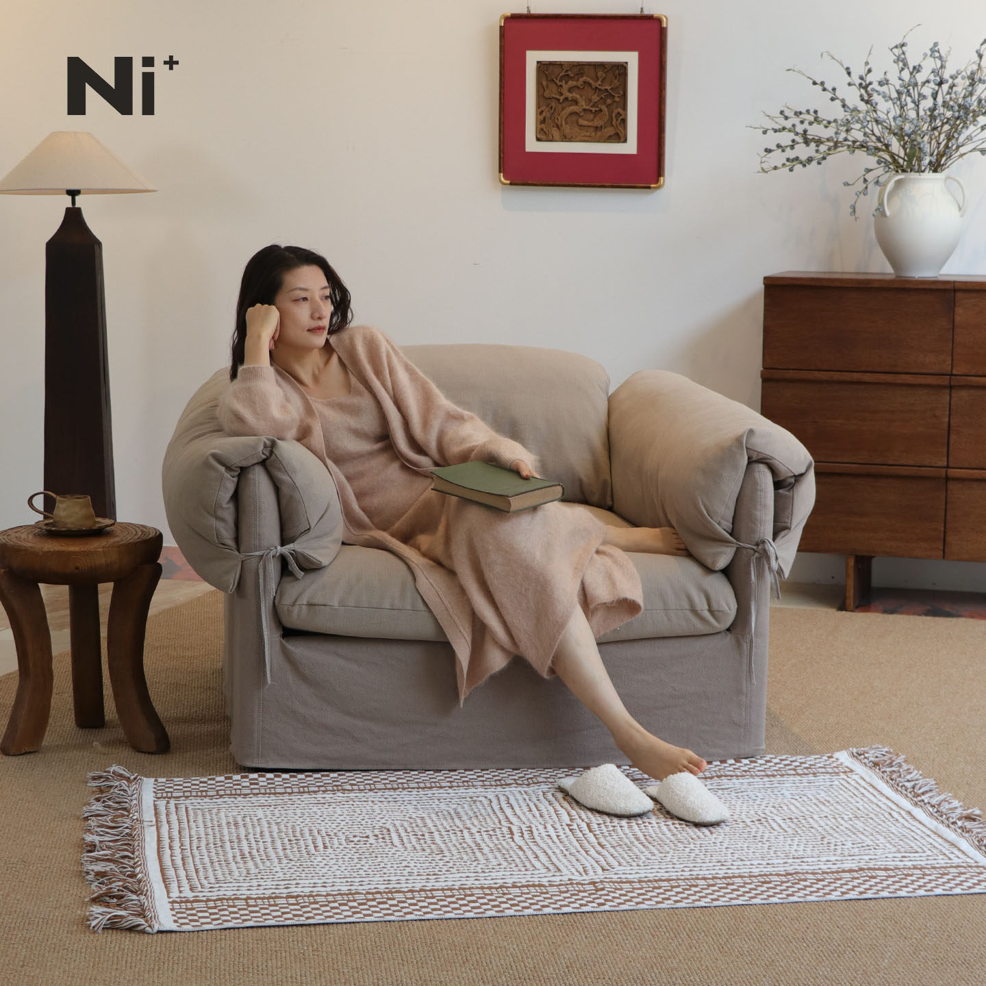 Ni+尼家侘寂风亚麻布艺沙发单人慵懒风中古风卧室客厅懒人沙发