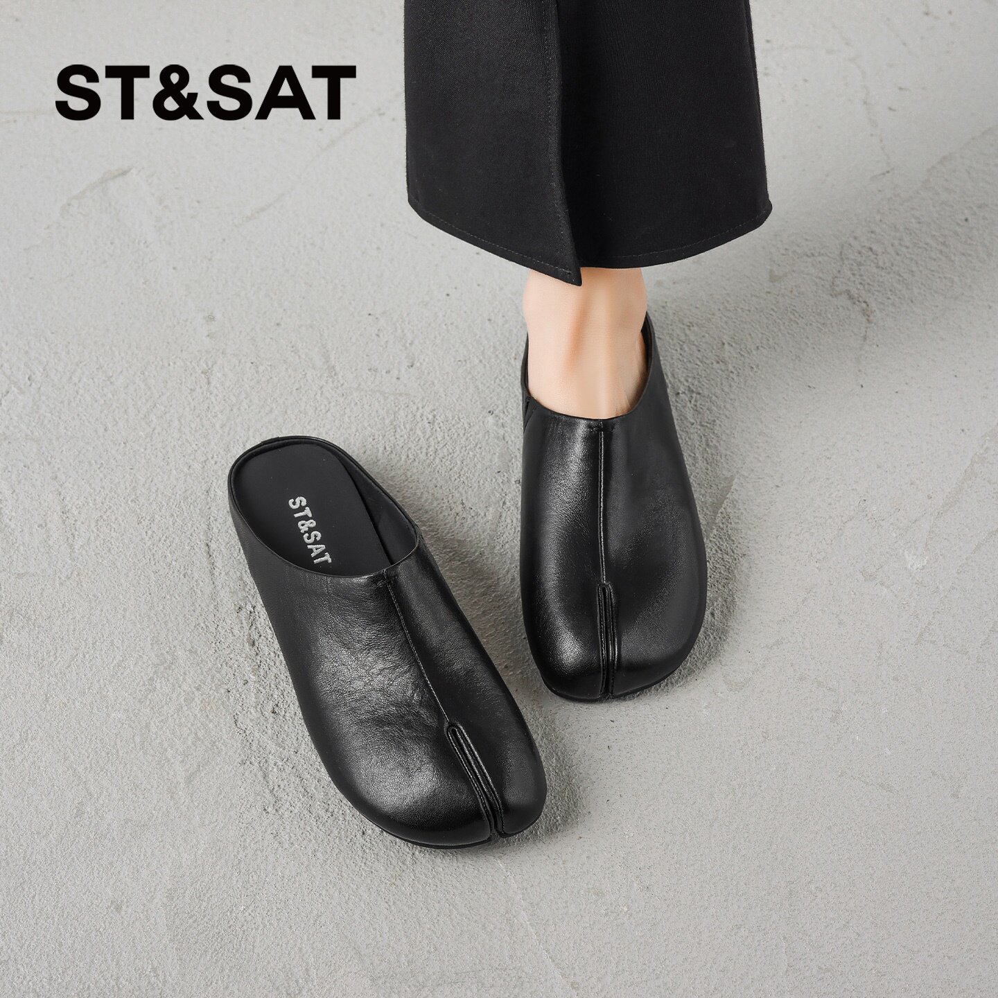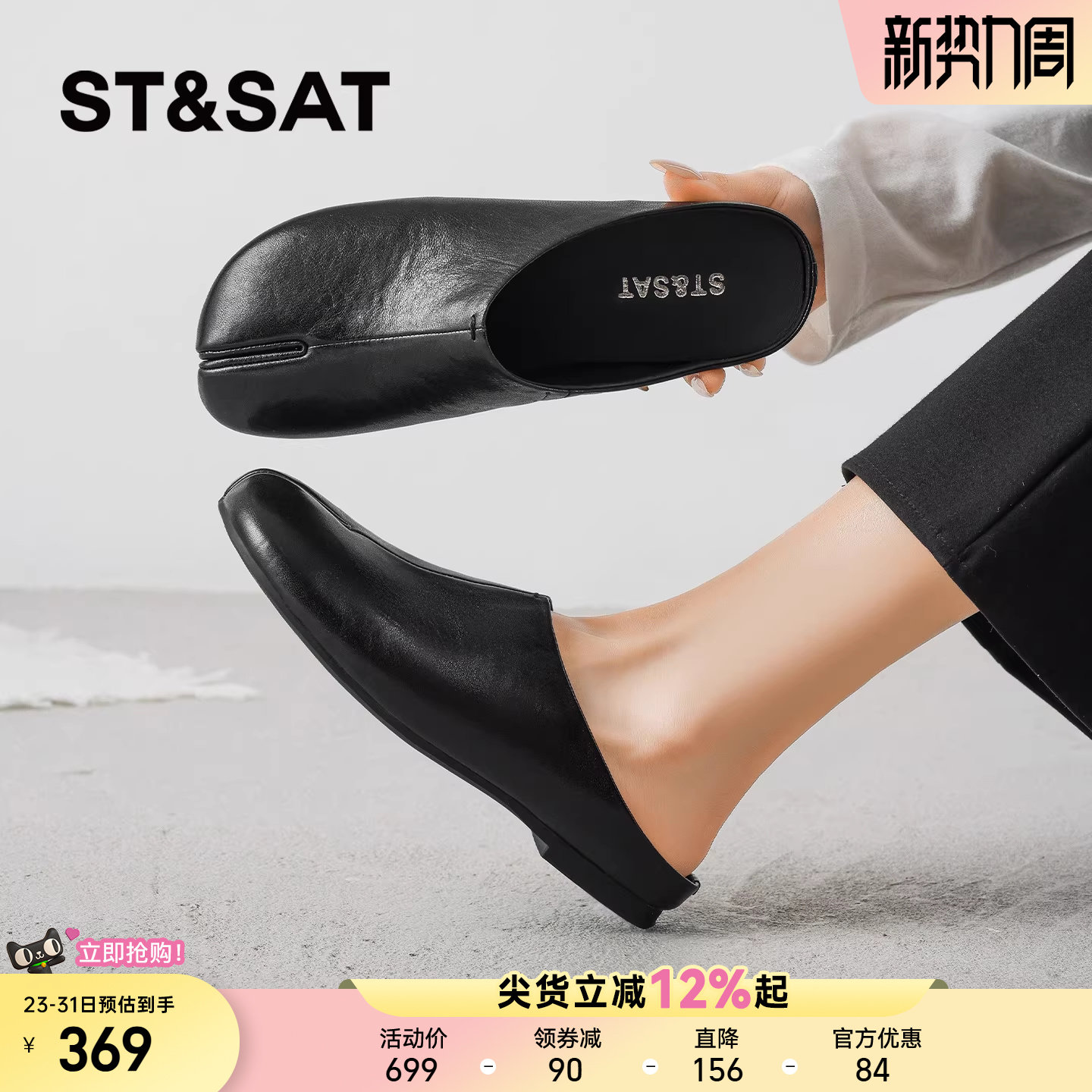 星期六黑色包头拖鞋女2026春新款外穿时尚真皮半包拖防滑懒人鞋女