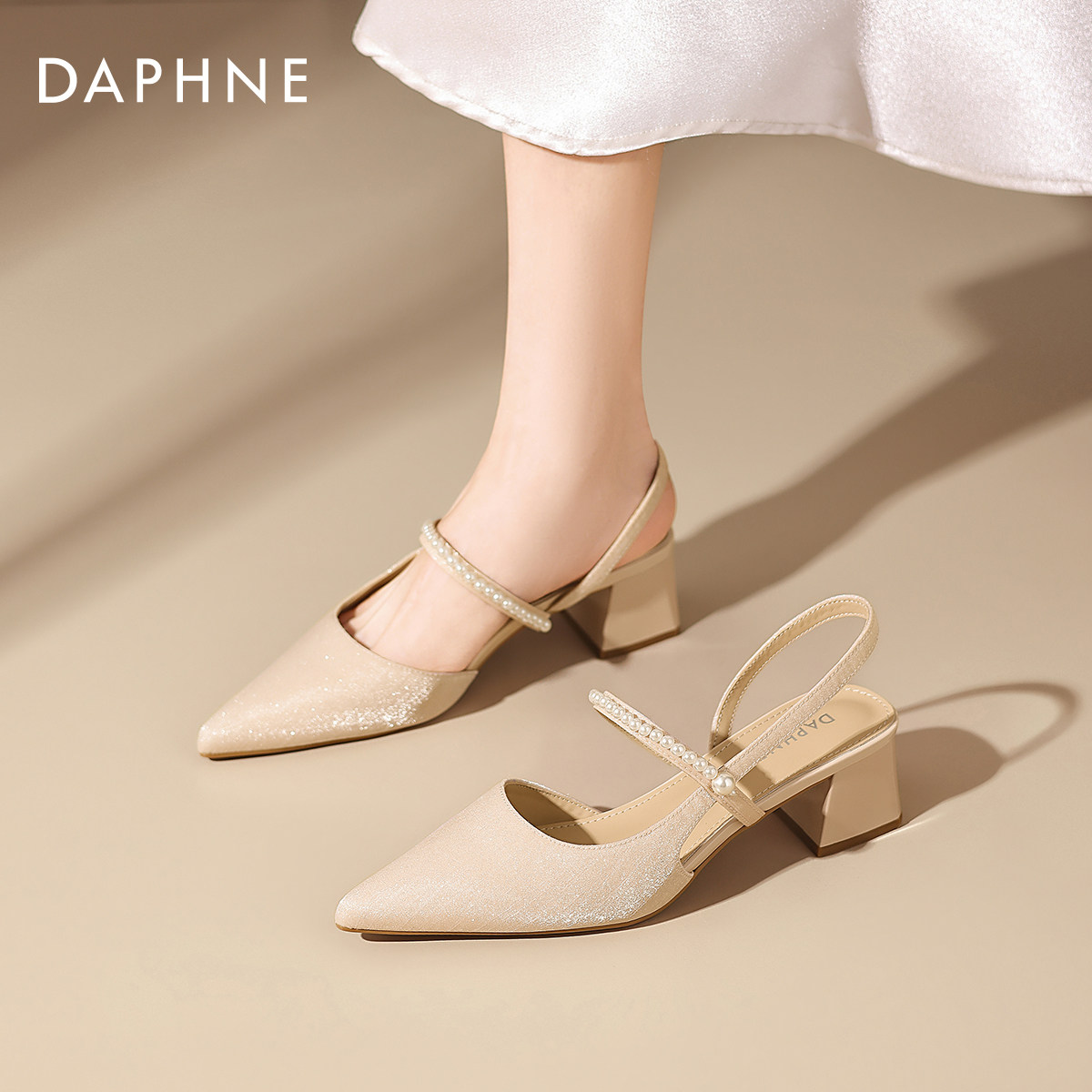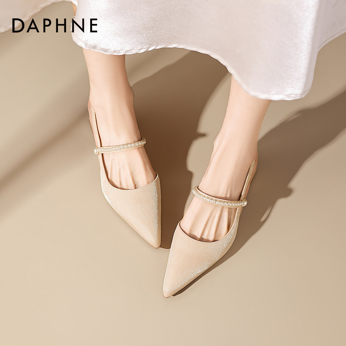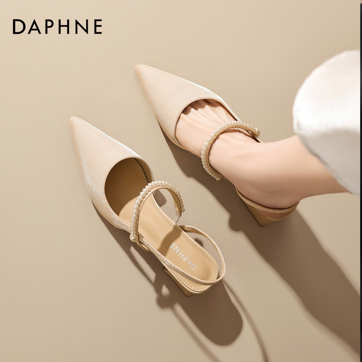 达芙妮尖头包头凉鞋2026新款夏季法式高跟外穿一字带玛丽珍女鞋子