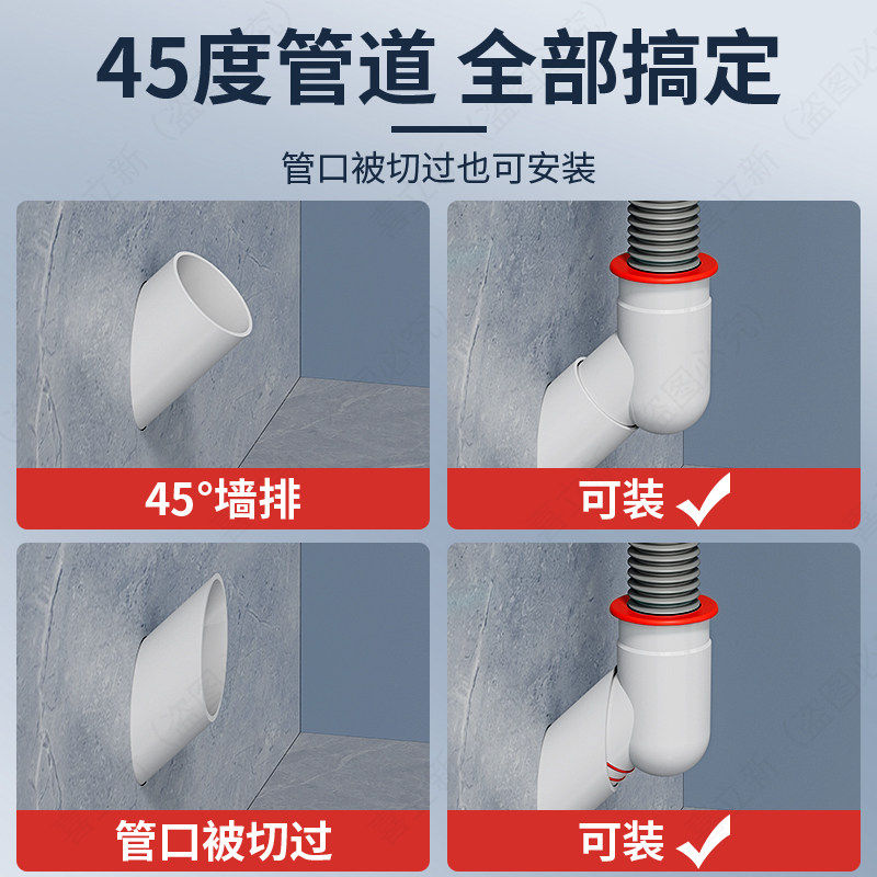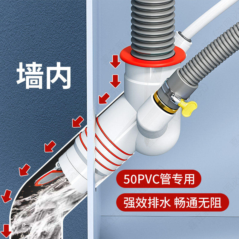 45度墙排下水管三通下水器洗衣机扫地机专用接头止逆阀防防臭神器