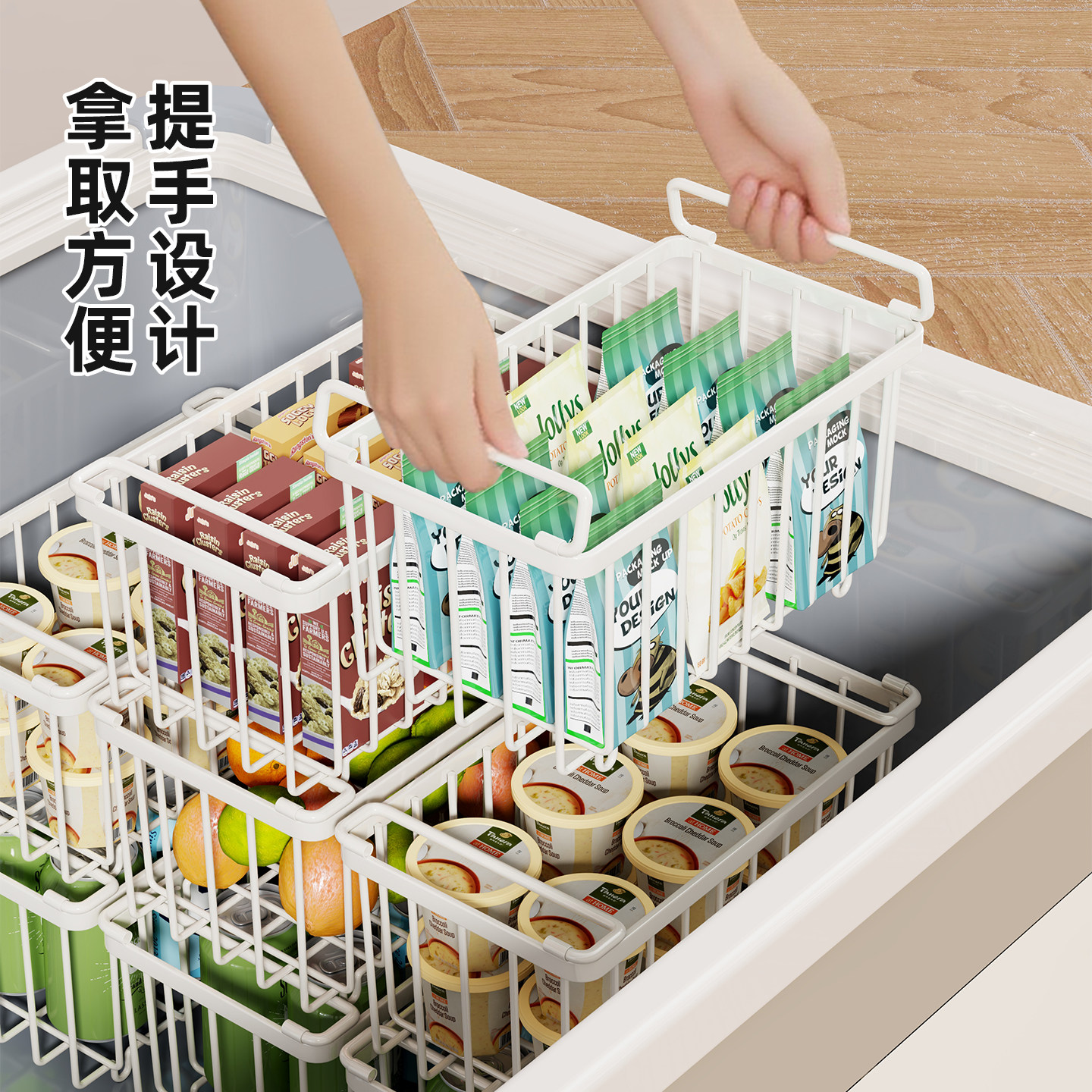 冰柜铁艺收纳篮家用多功能多格置物架厨房冷藏网格式储物架分层