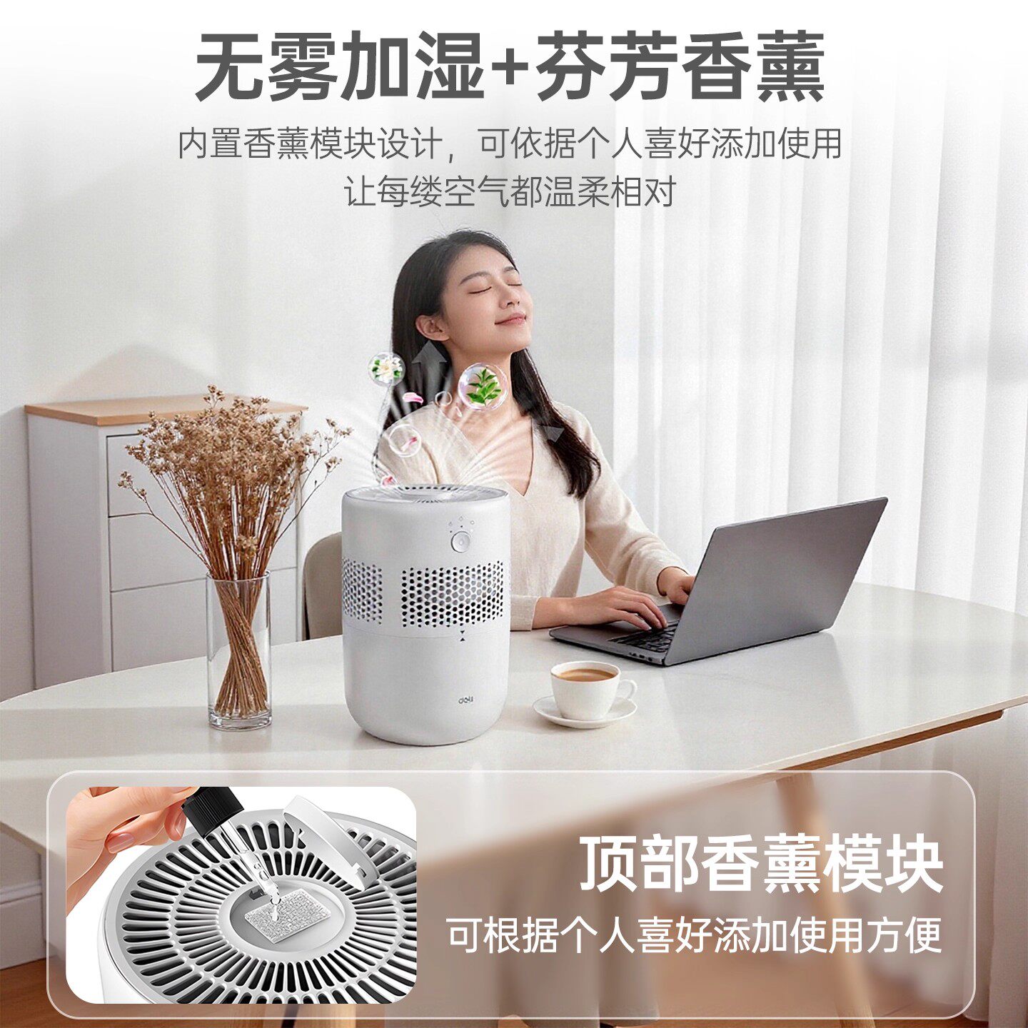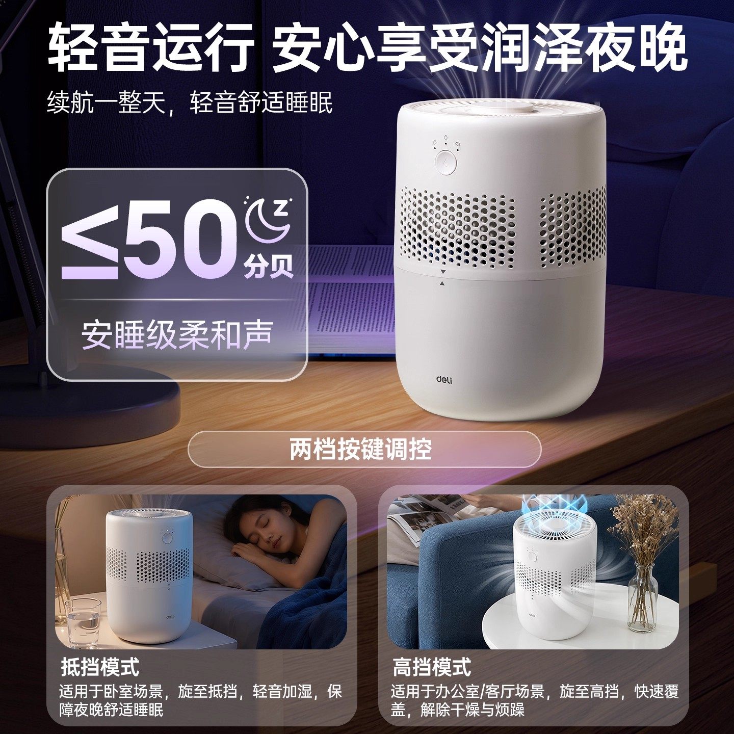 2025新款得力空气加湿器家用静音卧室无雾孕妇婴儿小型客厅大喷雾