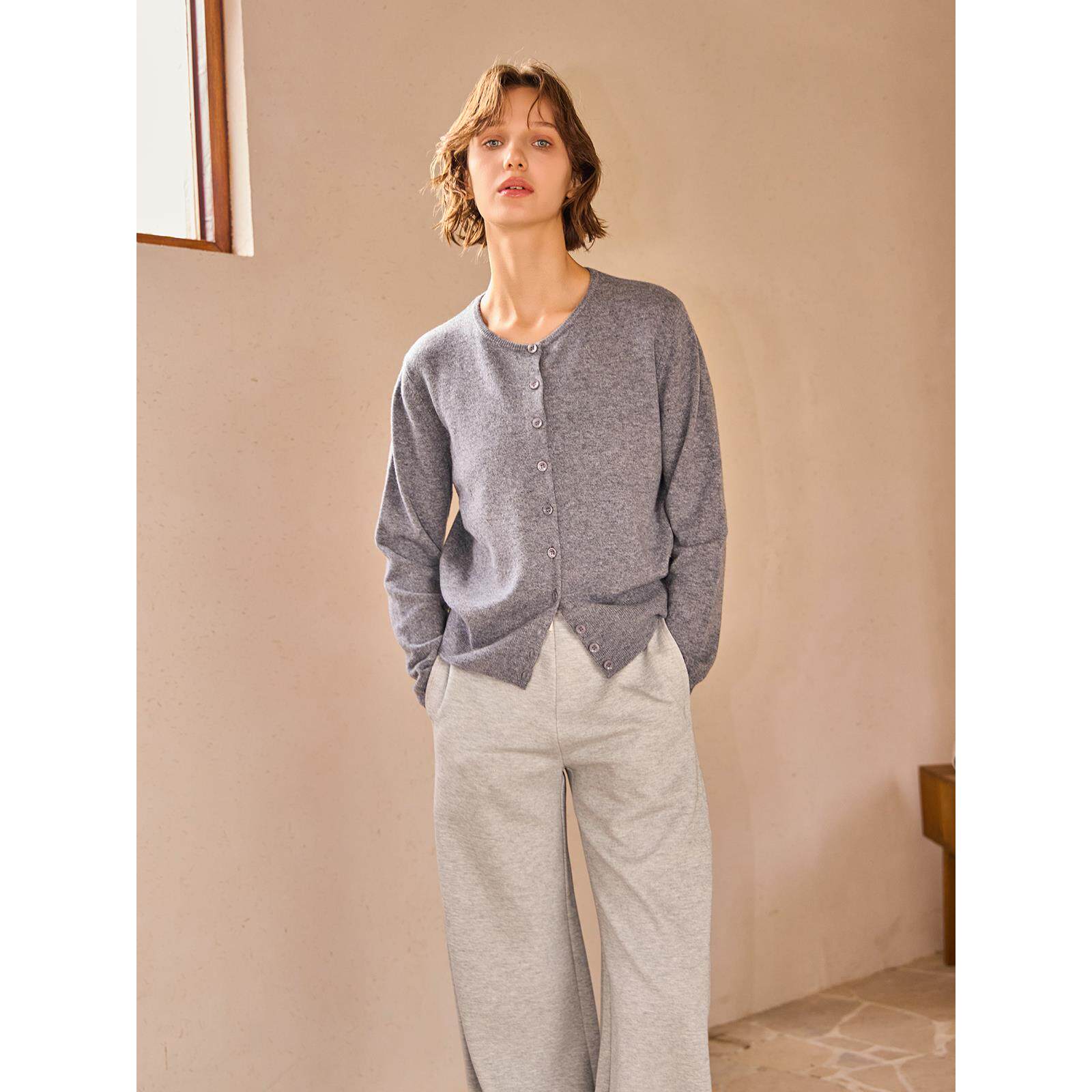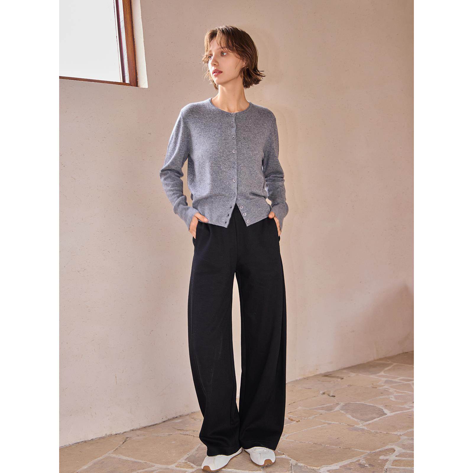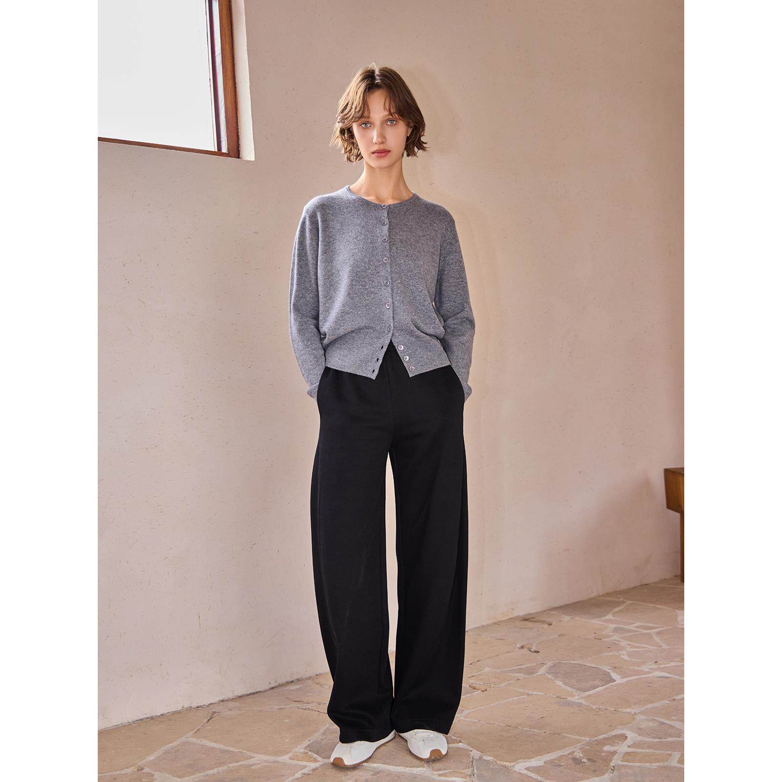 THEEASE舒适派绵羊毛混纺柔软舒适休闲百搭抗皱耐磨女垂坠阔腿裤
