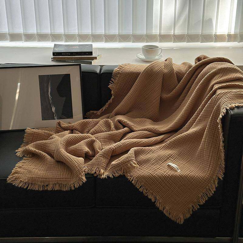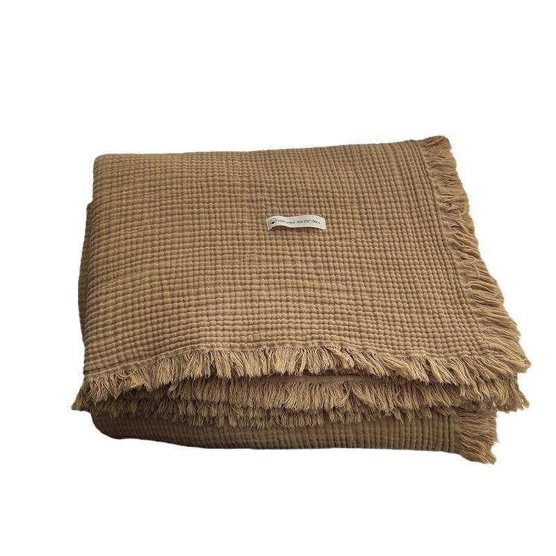轻奢A类褶皱流苏毛巾被夏季薄款纯棉四层纱布被子 柔软床单毛盖毯
