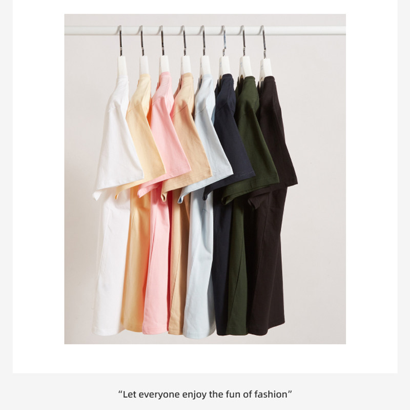 新款230克纯色精梳纯棉圆领短袖T恤男重磅潮牌宽松空白衫印花LOGO