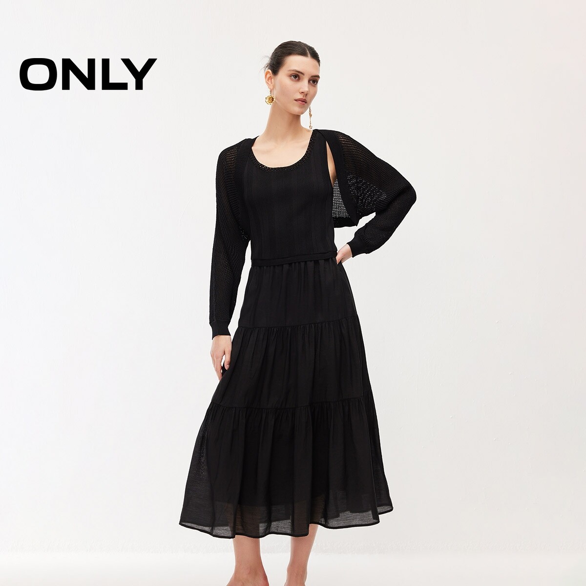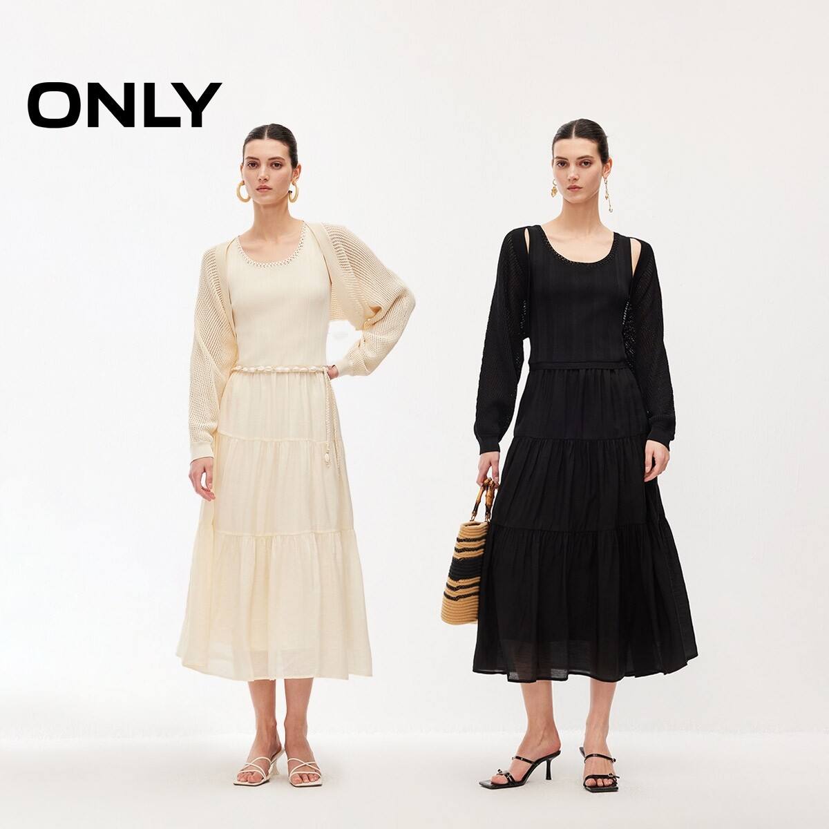 ONLY2026春季新款裙子优雅气质两件套镂空针织拼接长裙连衣裙女