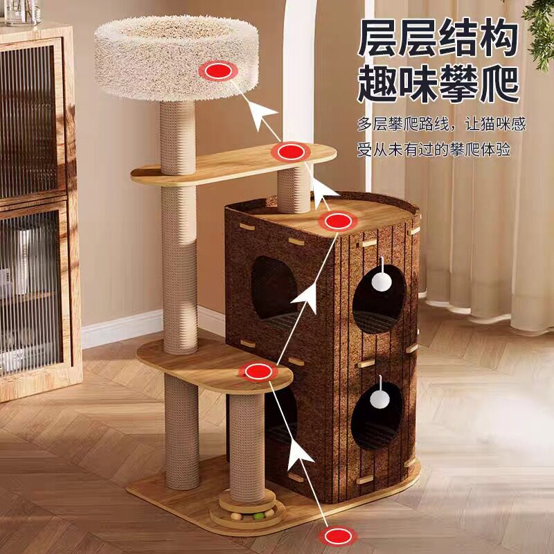 跨境猫爬架猫窝猫树一体猫咪多层树洞毛毡猫窝四季通用剑麻猫抓板