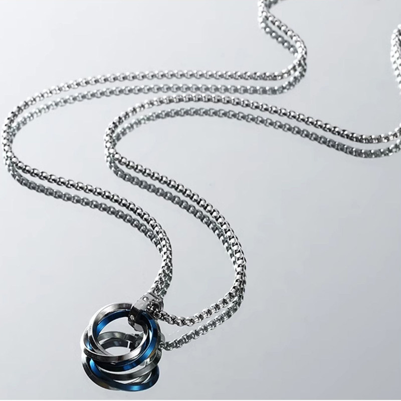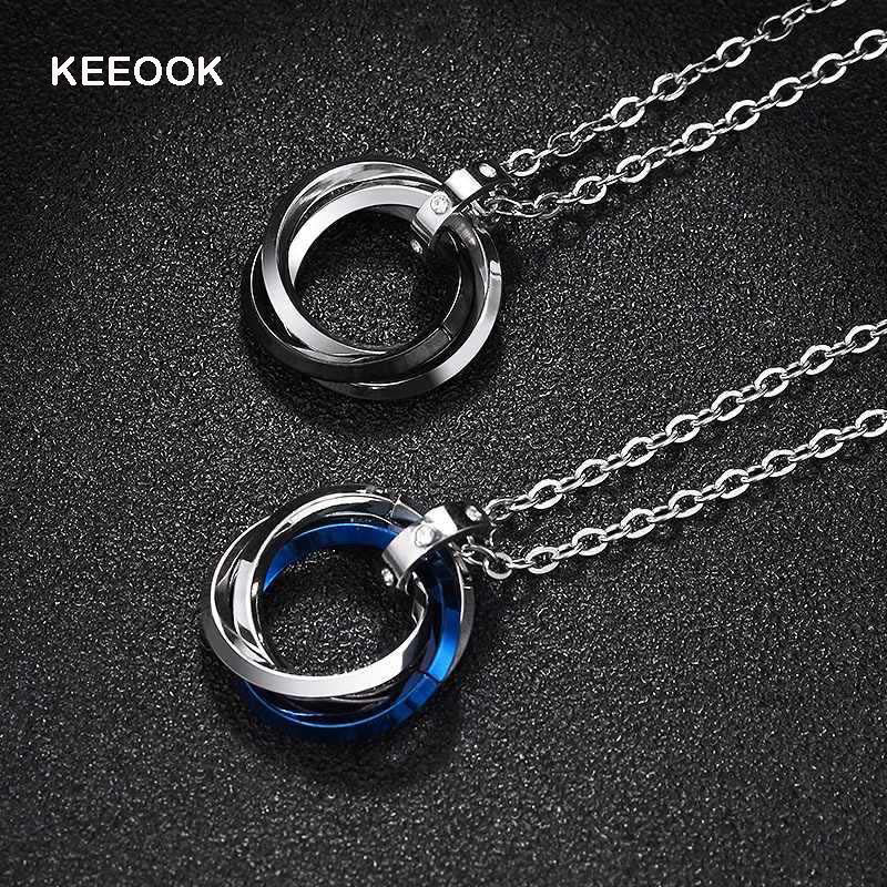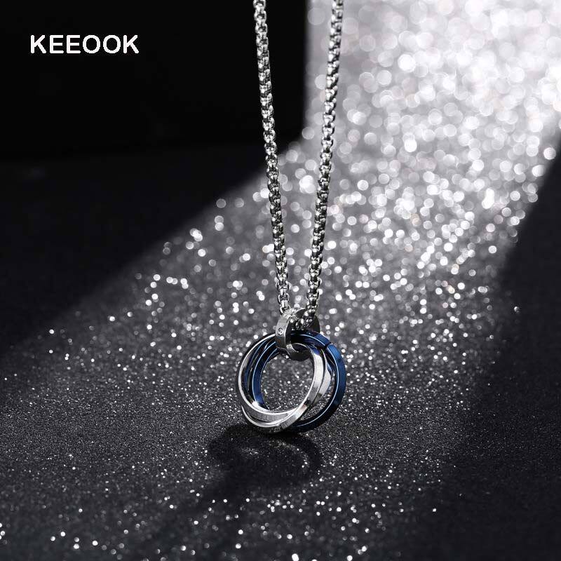 KEEOOK项链男双环设计锁骨链酷潮高街男士情侣项链时尚吊坠饰品