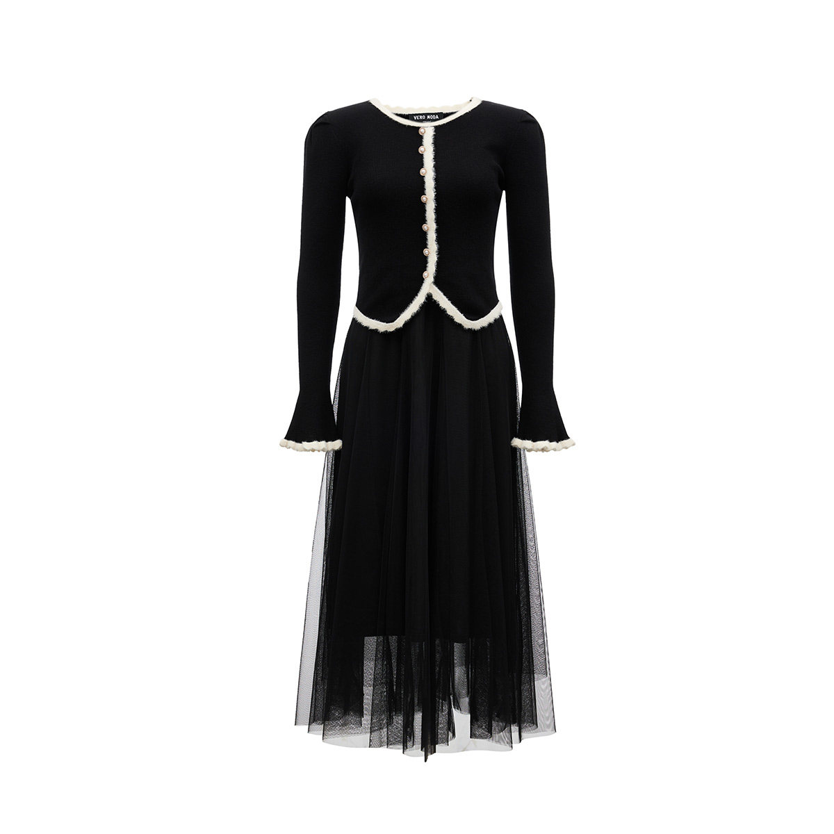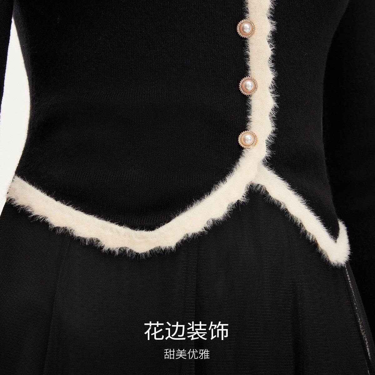 Vero Moda连衣裙2025秋冬新款毛边针织衫小黑裙套装32537D005