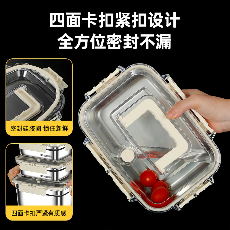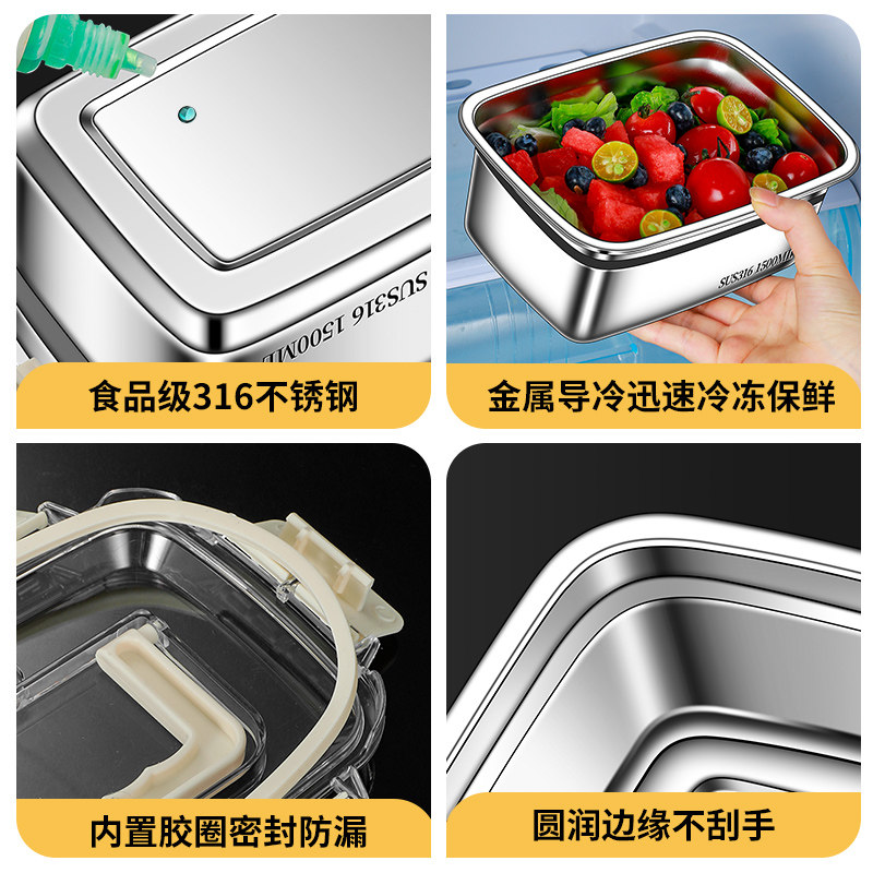 保鲜盒不锈钢食品级冰箱专用家用带盖密封便当盒饭盒收纳冷冻盒子