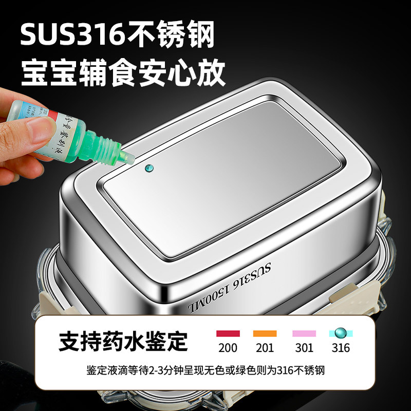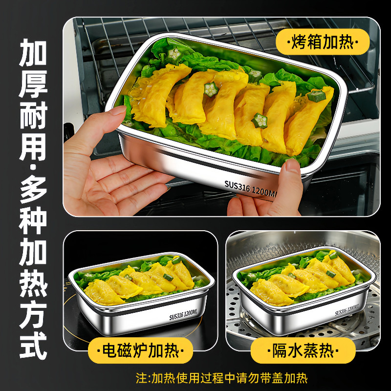 316不锈钢保鲜盒带盖冰箱收纳盒手提长方形密封方盒户外露营冷冻