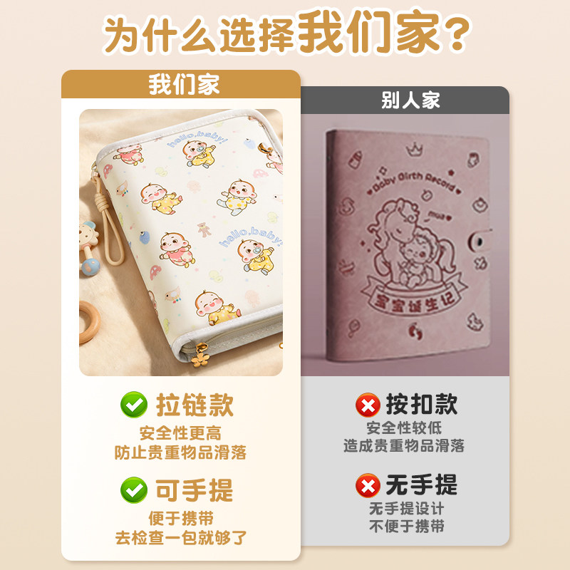 产检收纳册孕检收纳袋孕妇初期必备用品马宝宝报告单孕期档案册带拉链产检本孕妈产检包检查资料记录册活页