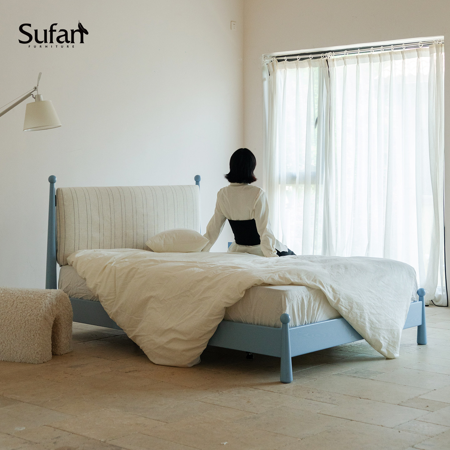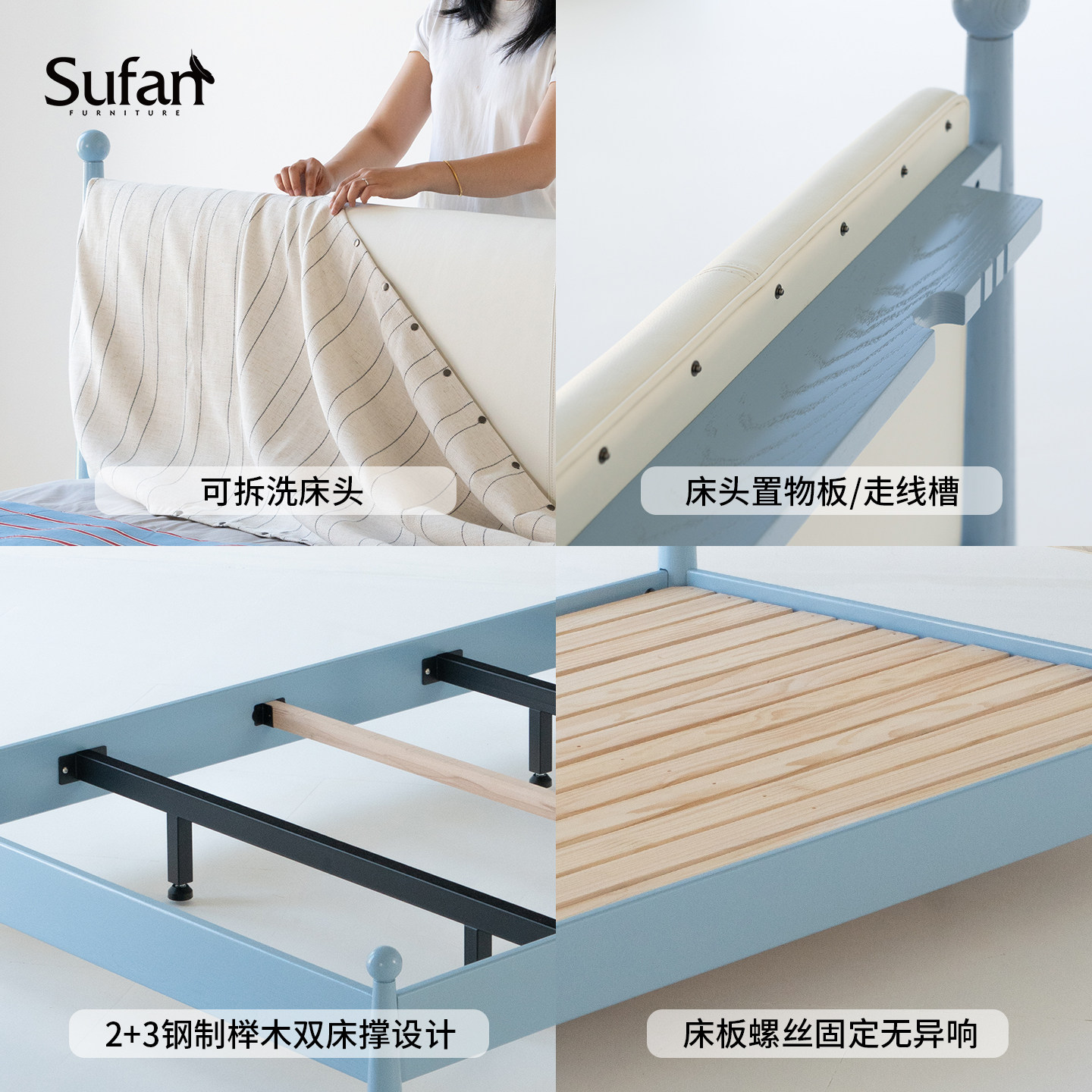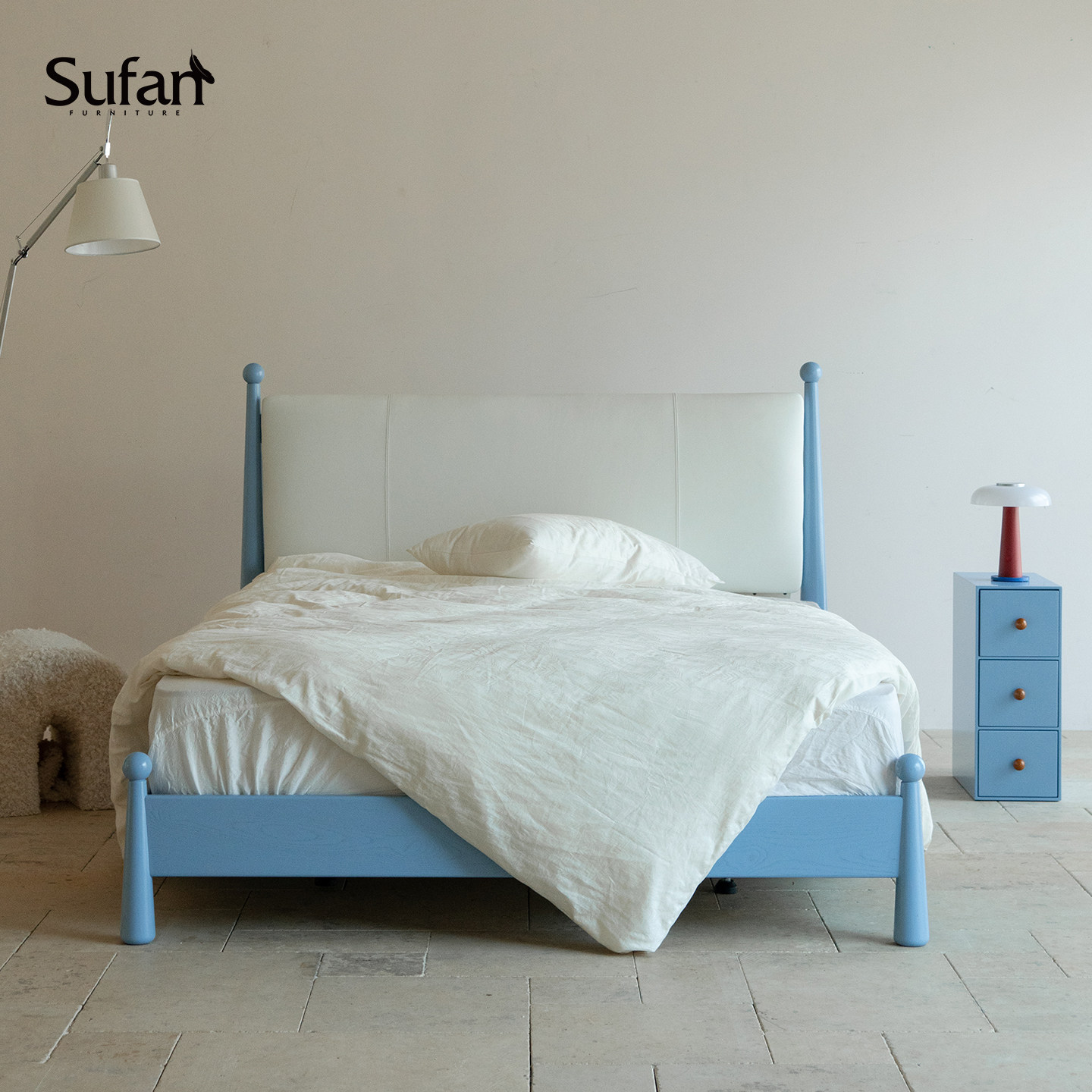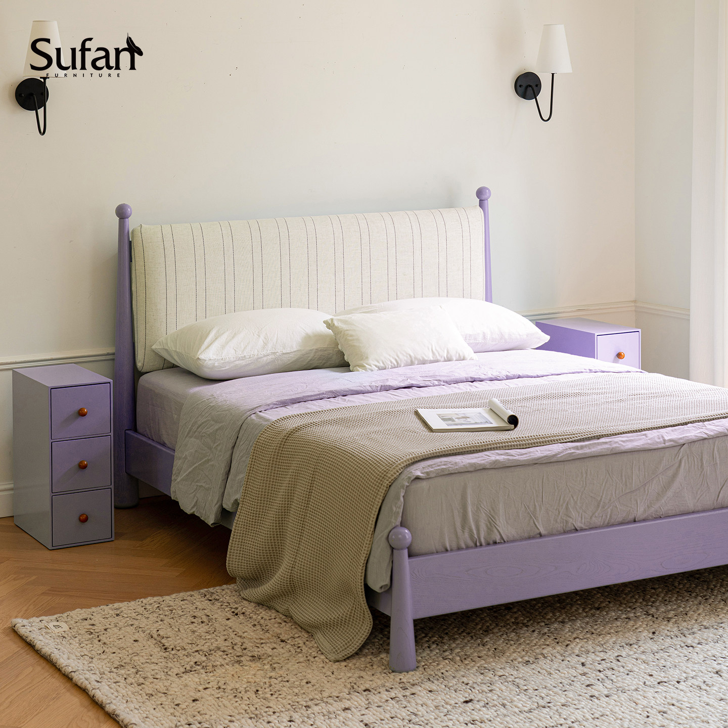 舒梵新色香芋紫伊卡床7折/皮床秒变布床四季通用民宿实木皮艺床