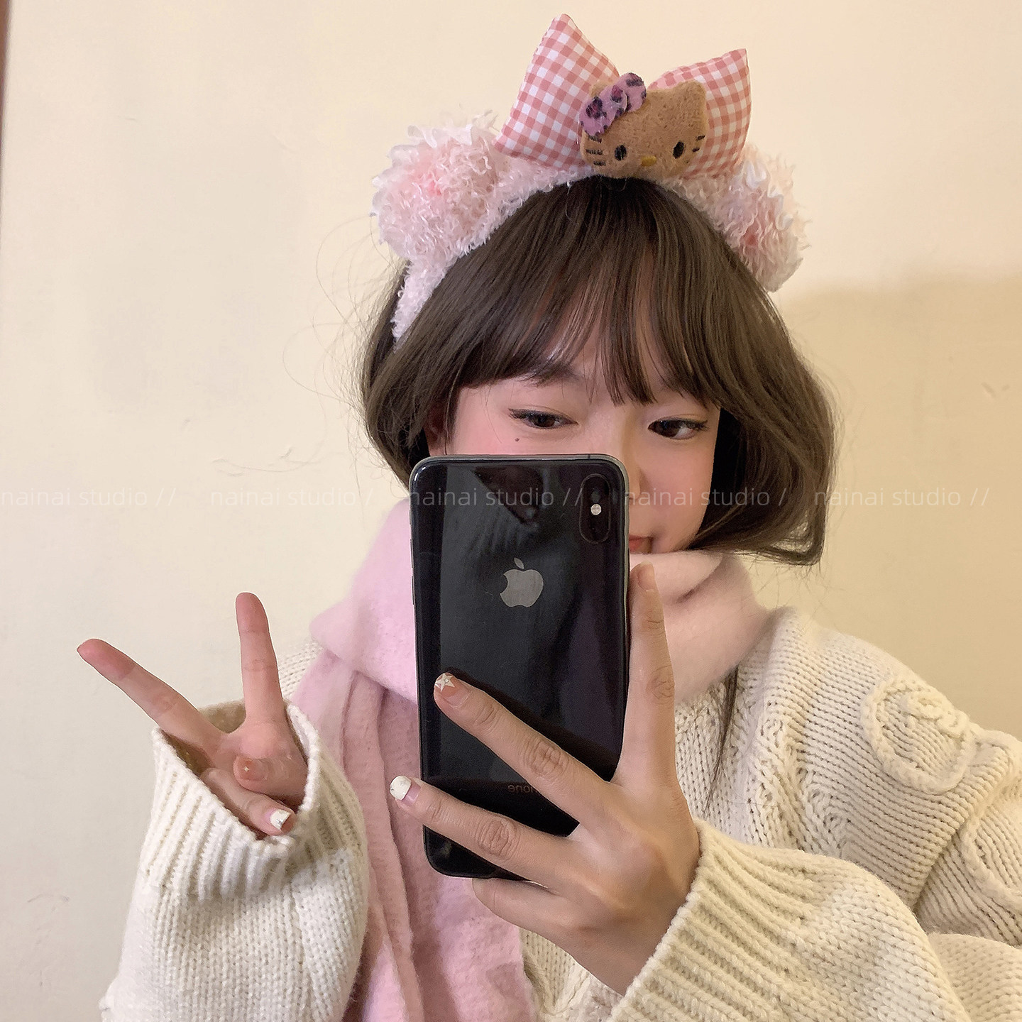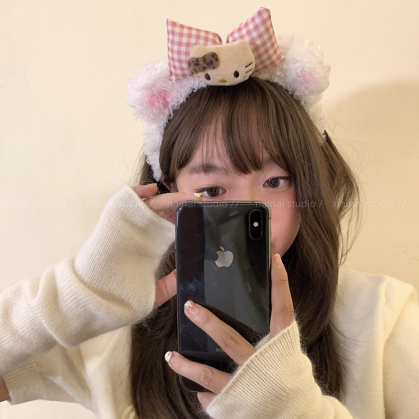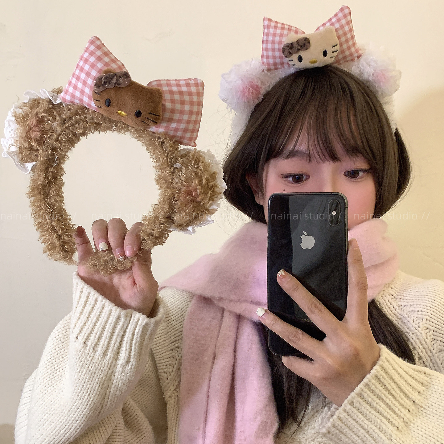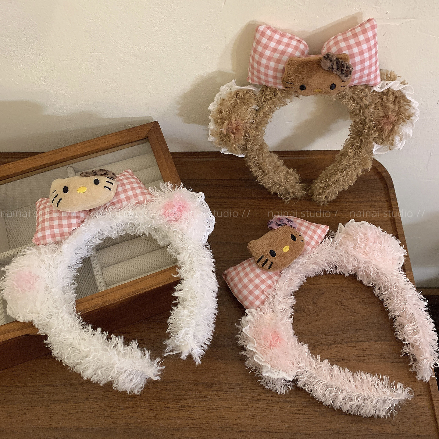 Kitty发箍~毛绒小熊耳朵腮红黑皮豹纹KT猫咪卡通可爱头箍洗脸化妆