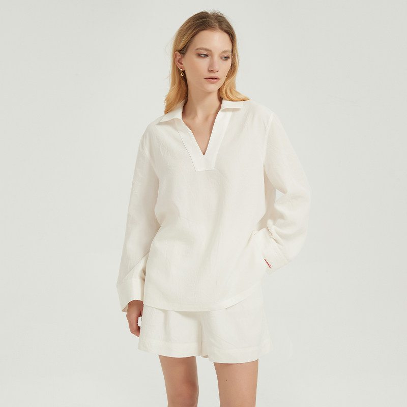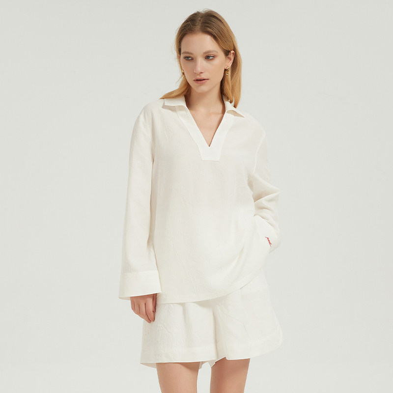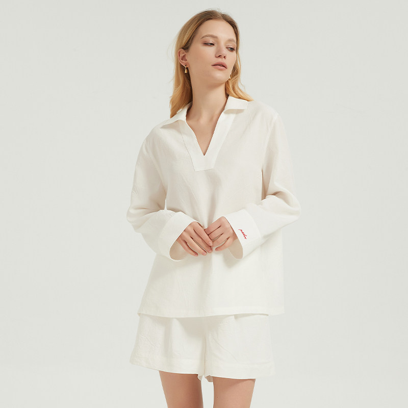 Petit Bari女士高阶实穿亚麻V领轻薄衬衫 面料舒适 休闲百搭