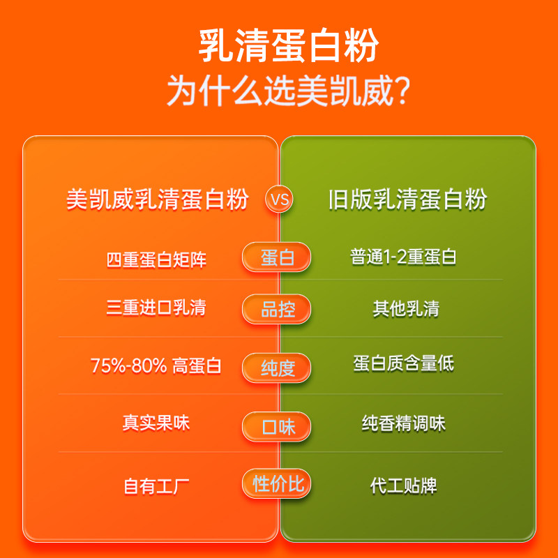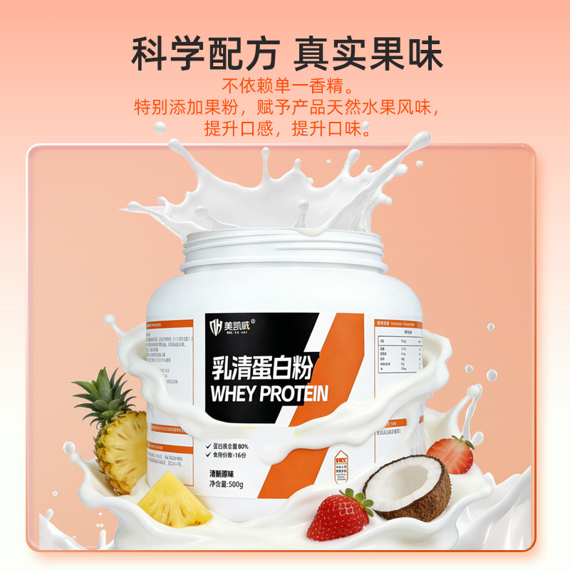 美凯威三重乳清蛋白粉蛋白浓缩分离水解增肌运动500g草莓味原味
