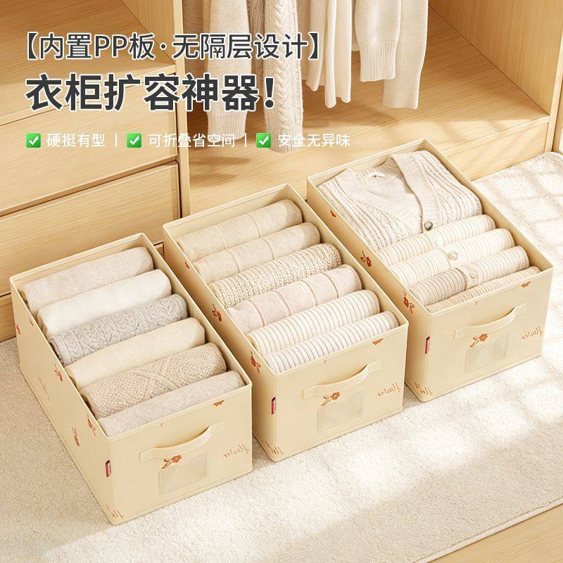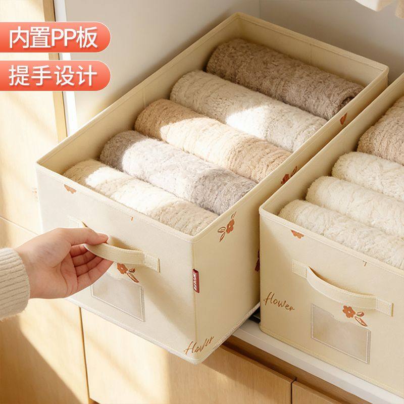 天山棉麻收纳筐衣柜收纳整理分层神器PP板可水洗衣服储物盒收纳箱