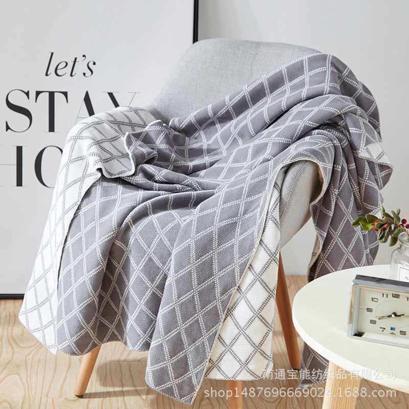 厂家直销纯棉北欧针织毯子 全棉毛线毯双面休闲毯盖毯披肩毯沙发