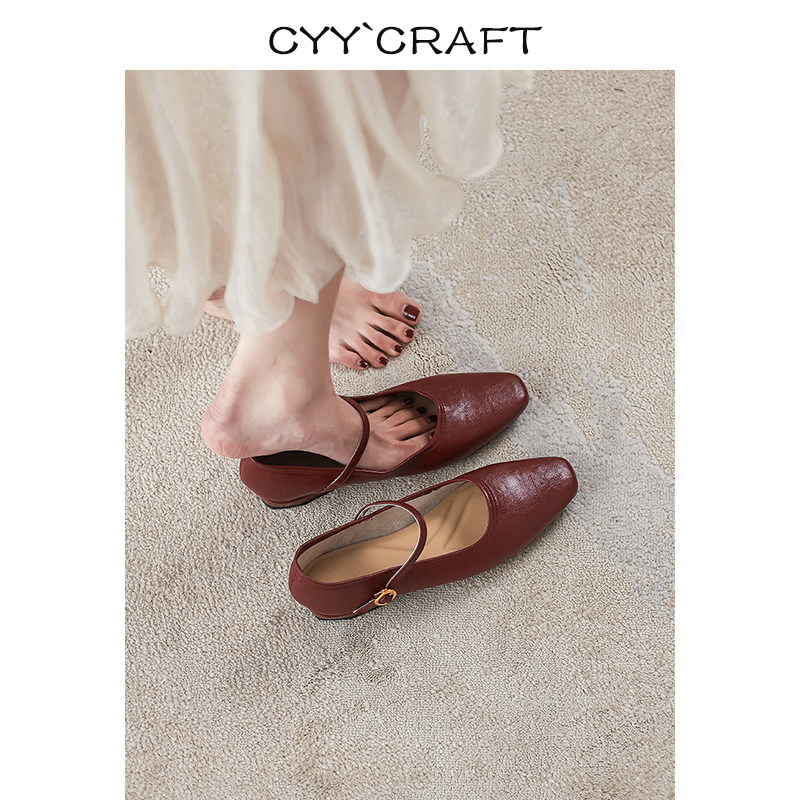 真皮~骄屿复古浅口高跟鞋山茶花一字扣粗跟单鞋尖头气质玛丽珍鞋