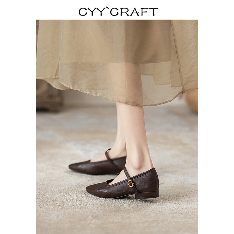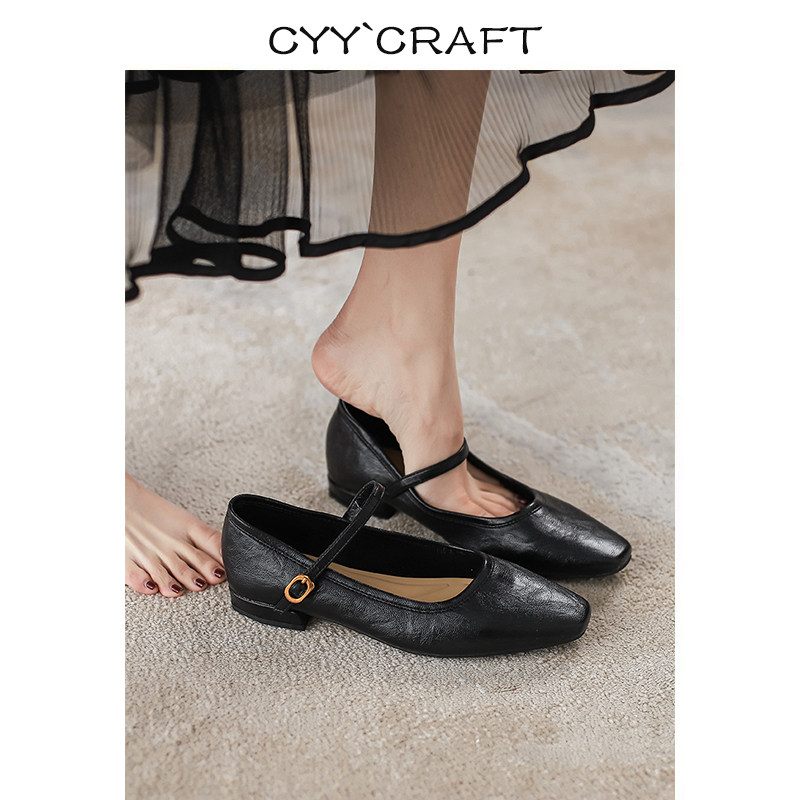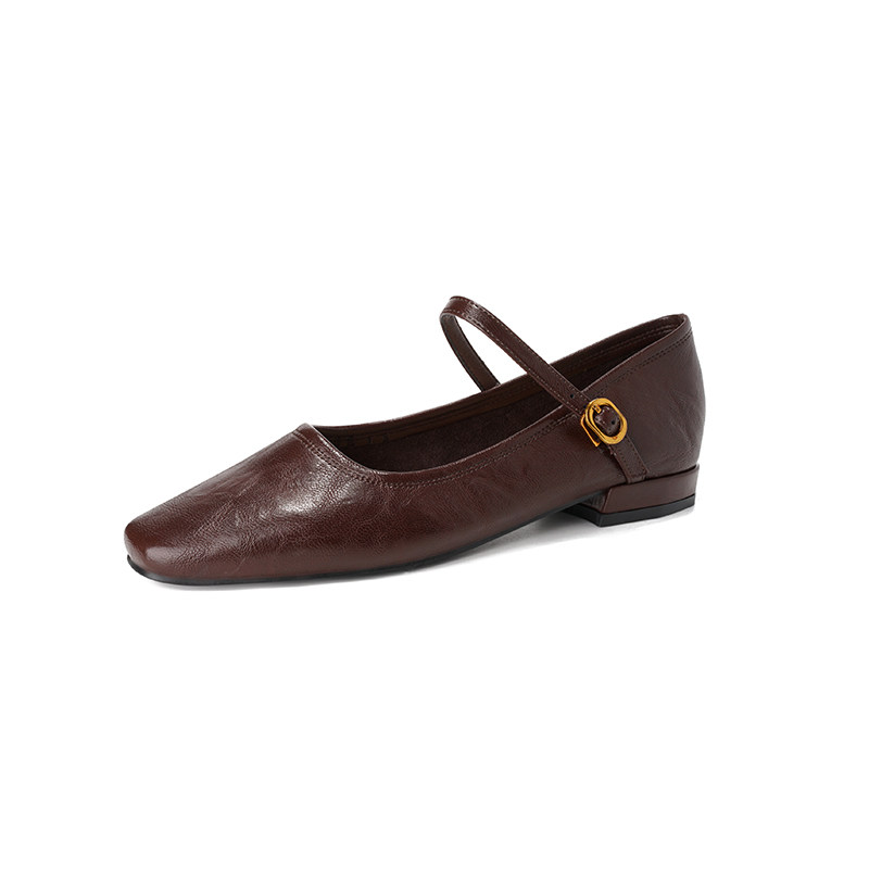 软羊皮~复古文艺单鞋女2025新款一字式浅口粗跟玛丽珍通勤小皮鞋