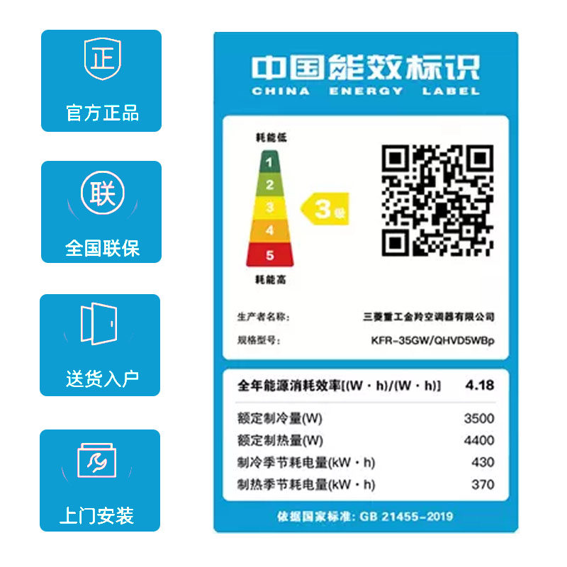 Mitsubishi/三菱重工空调1.5匹挂机家用冷暖两用变频官方正品qhv